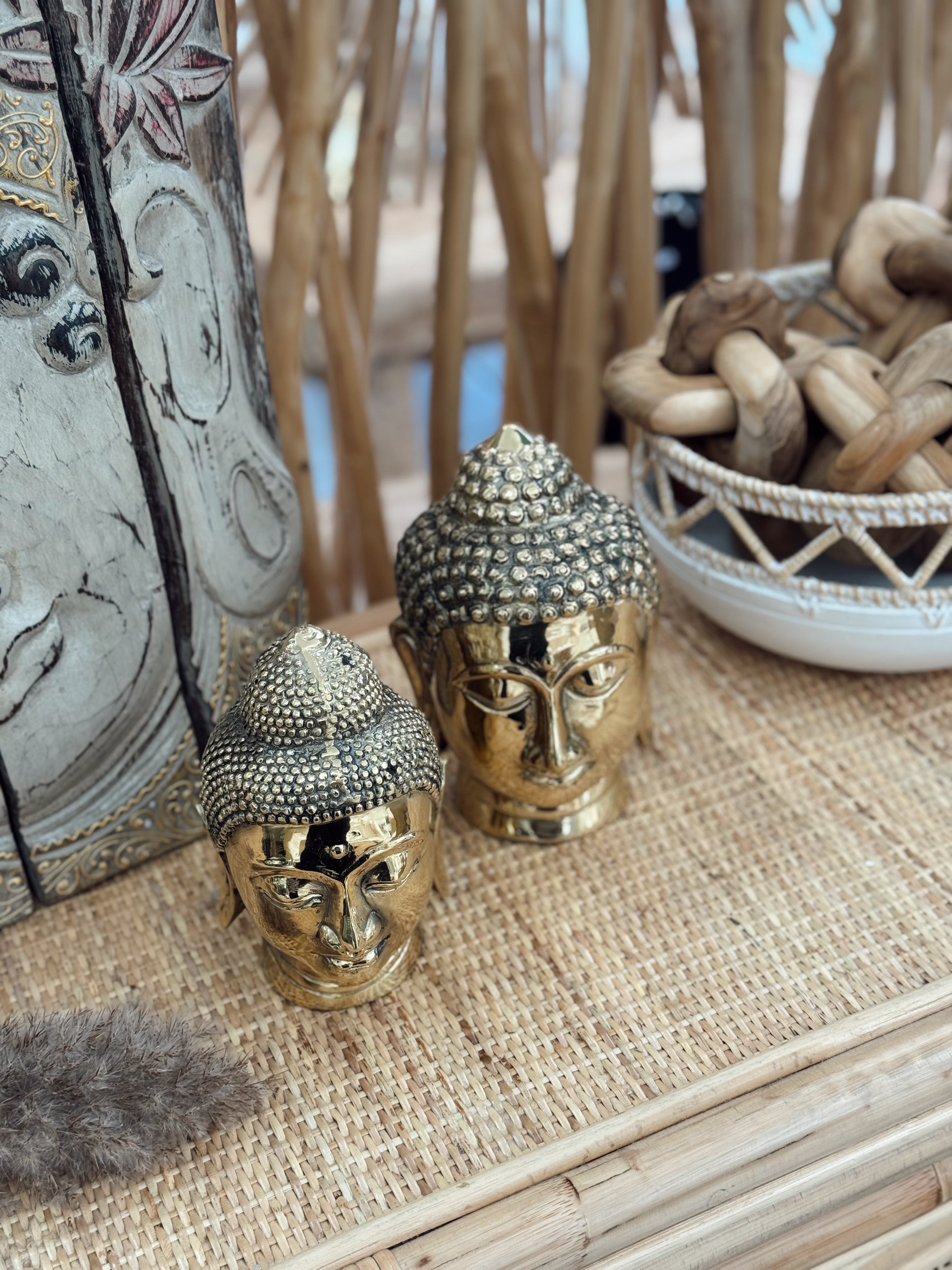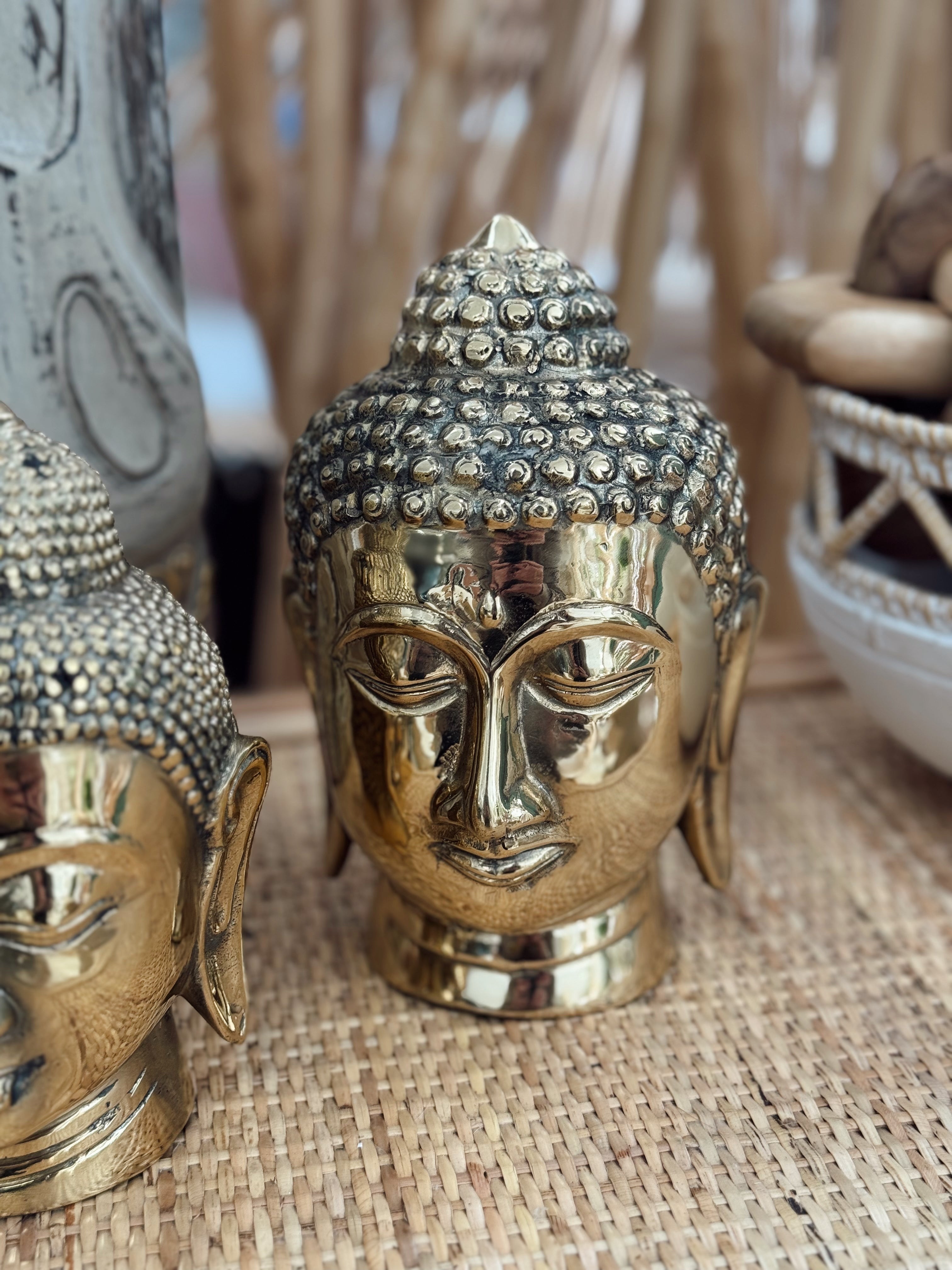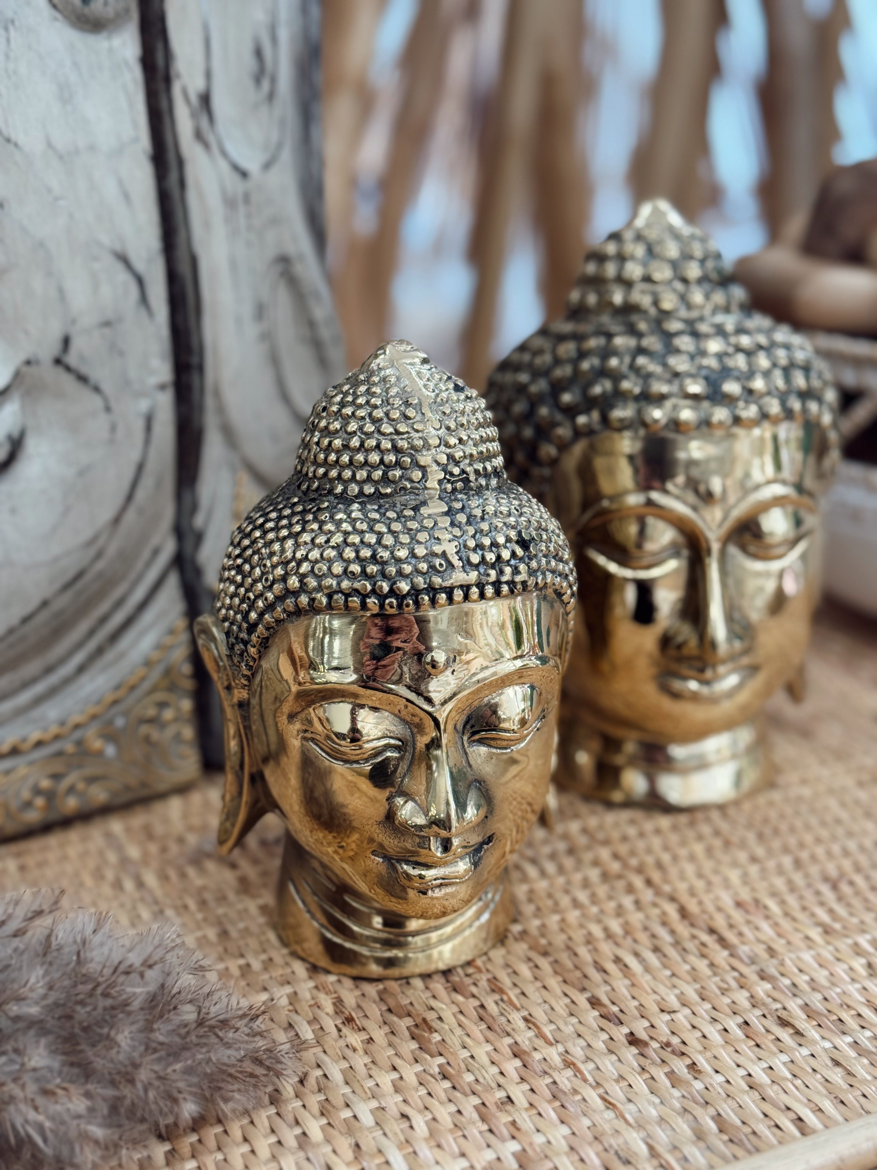 Ces superbes têtes de Bouddha en laiton incarnent la sérénité et la sagesse. Leur finition dorée brillante illumine instantanément l’espace, tout en apportant une touche spirituelle à votre décoration.