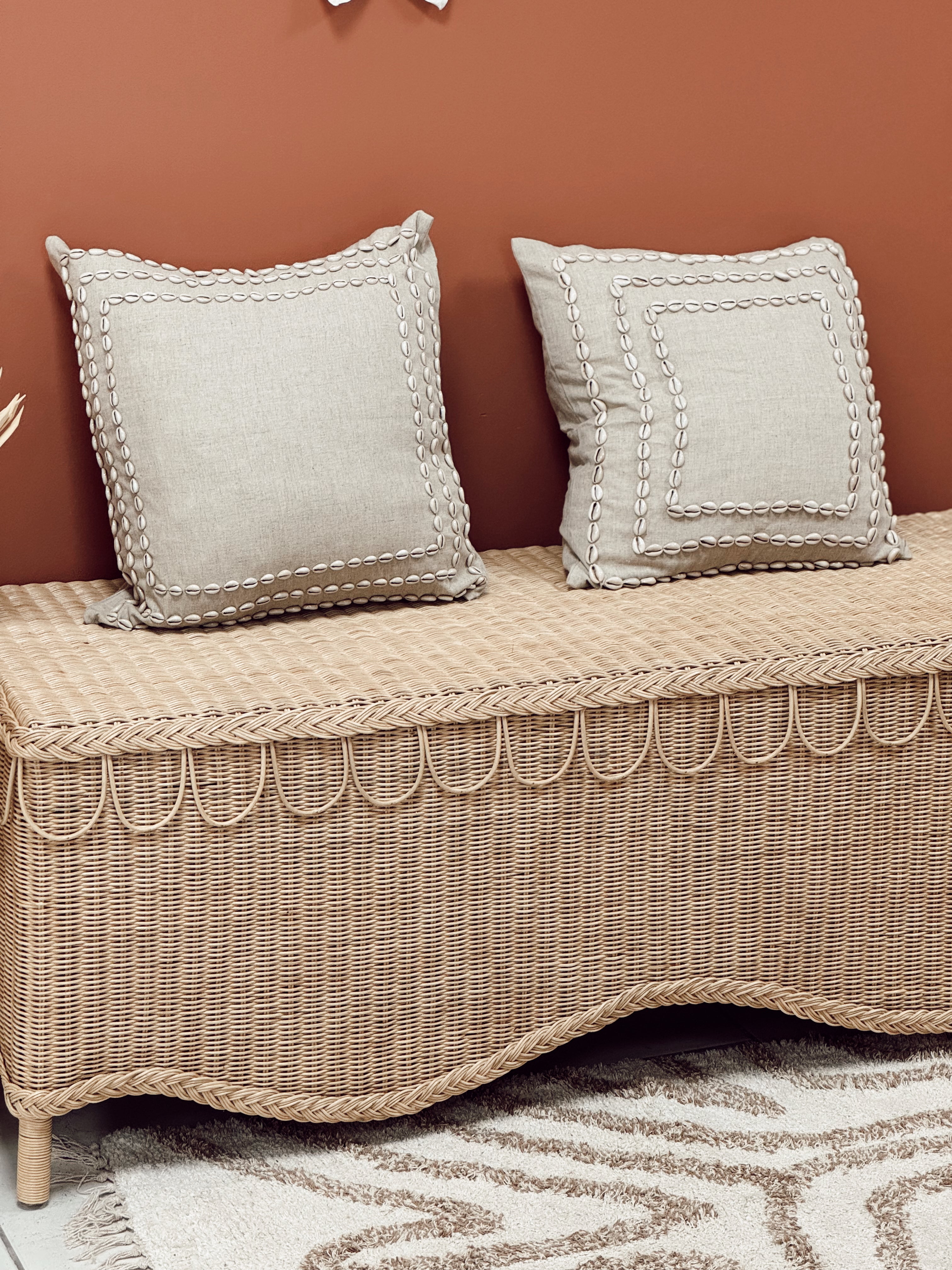 Un banc en rotin au charme vintage, avec ses jolies courbes et son tressage délicat. Parfait dans une entrée, au bout du lit ou dans un salon lumineux, il apporte une touche bohème tout en légèreté.