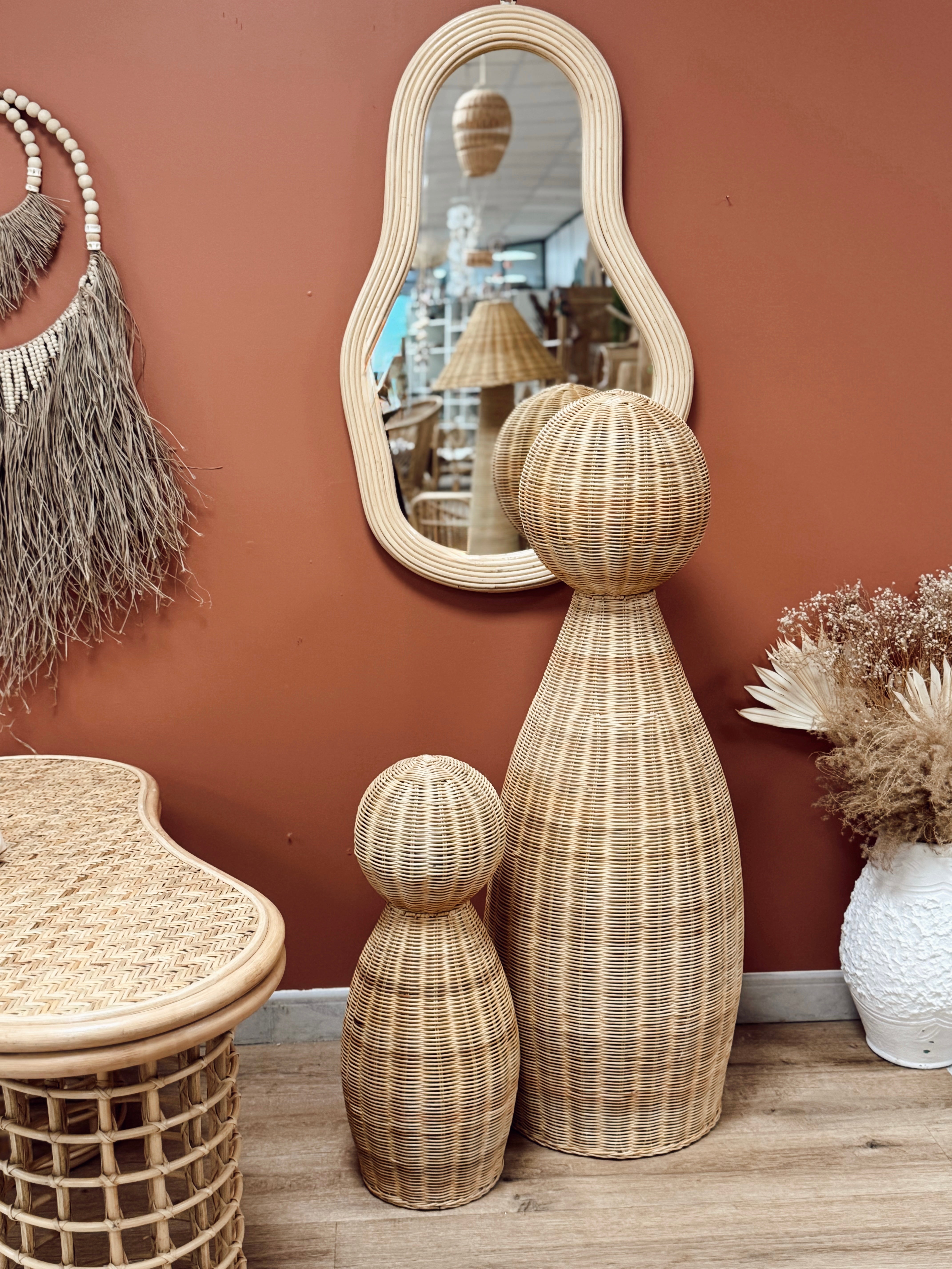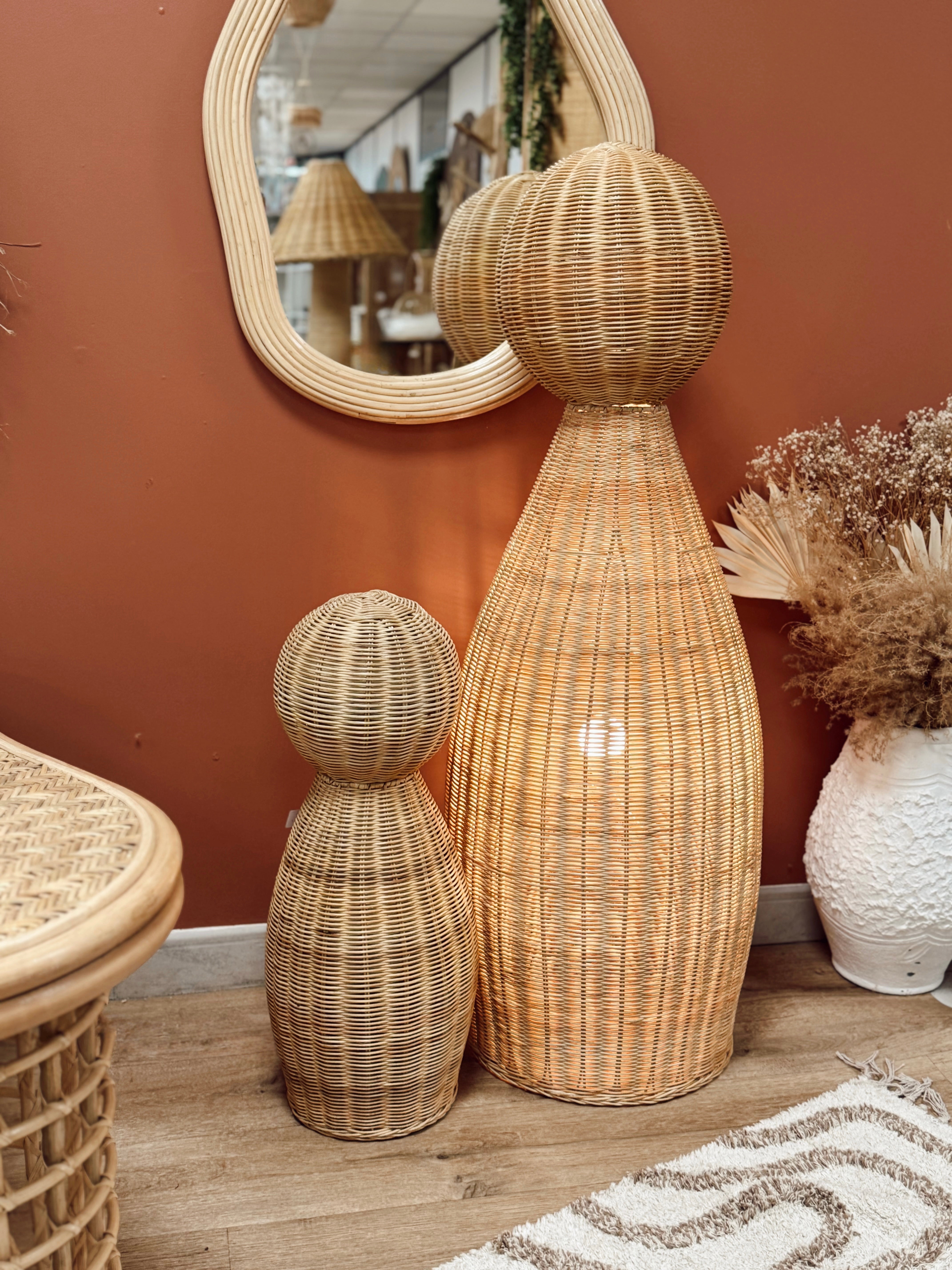 Entièrement façonnée à la main, la Gili Moon se pose au sol comme une sculpture lumineuse. Sa silhouette généreuse et son tressage tout en courbes apportent une présence forte et apaisante. Elle sublime une chambre, un salon ou un coin lecture avec charme et naturel.