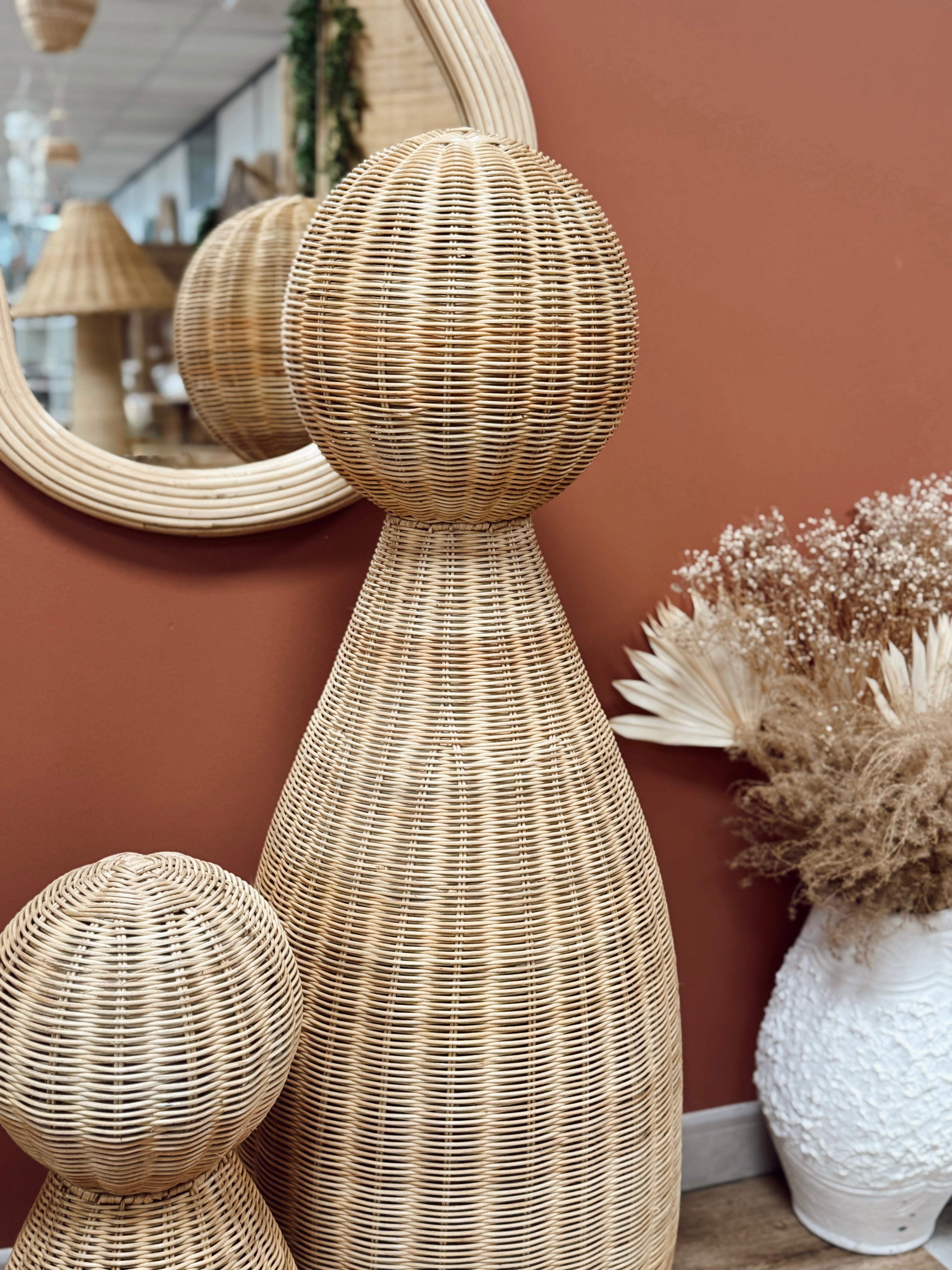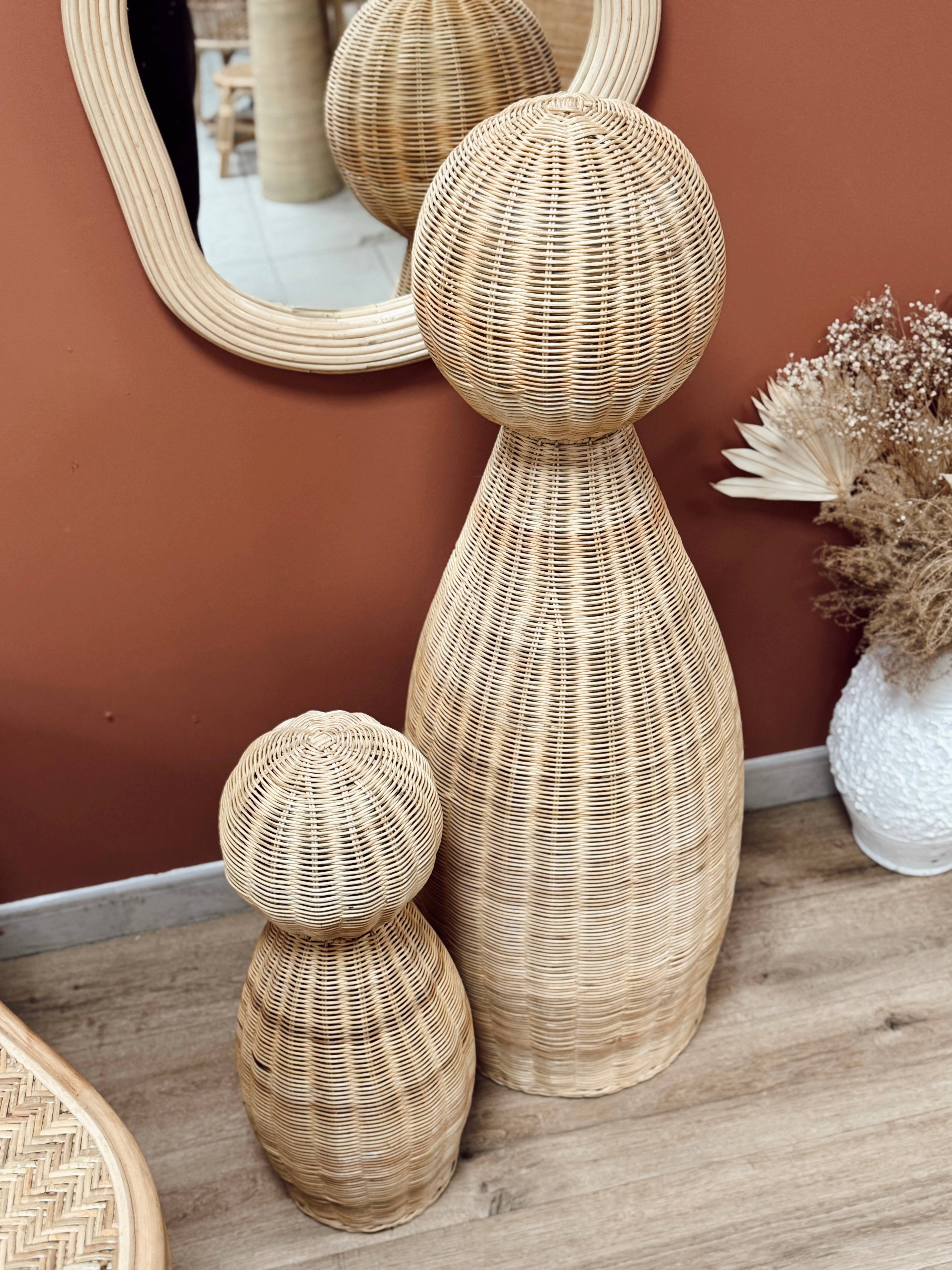 Entièrement façonnée à la main, la Gili Moon se pose au sol comme une sculpture lumineuse. Sa silhouette généreuse et son tressage tout en courbes apportent une présence forte et apaisante. Elle sublime une chambre, un salon ou un coin lecture avec charme et naturel.