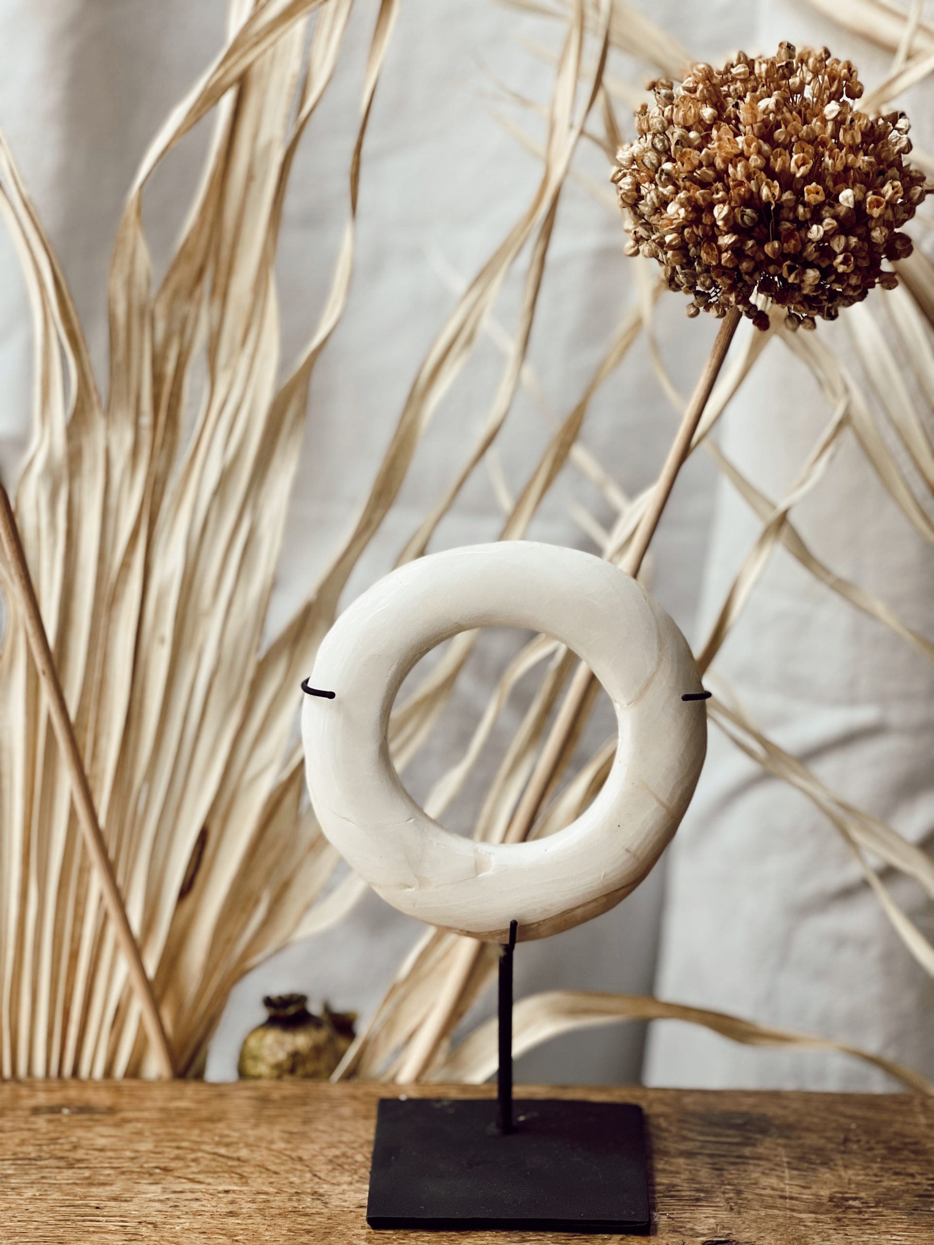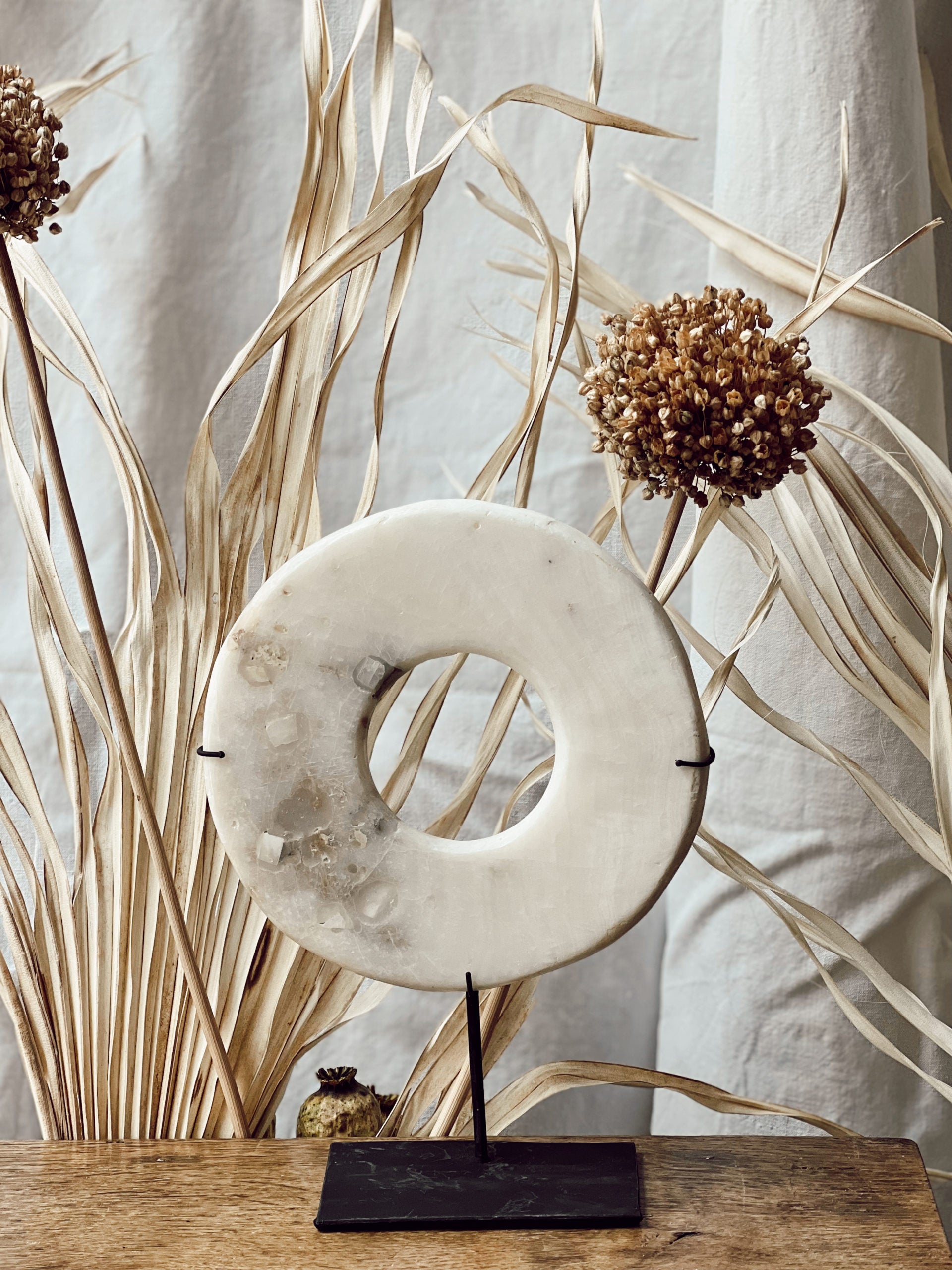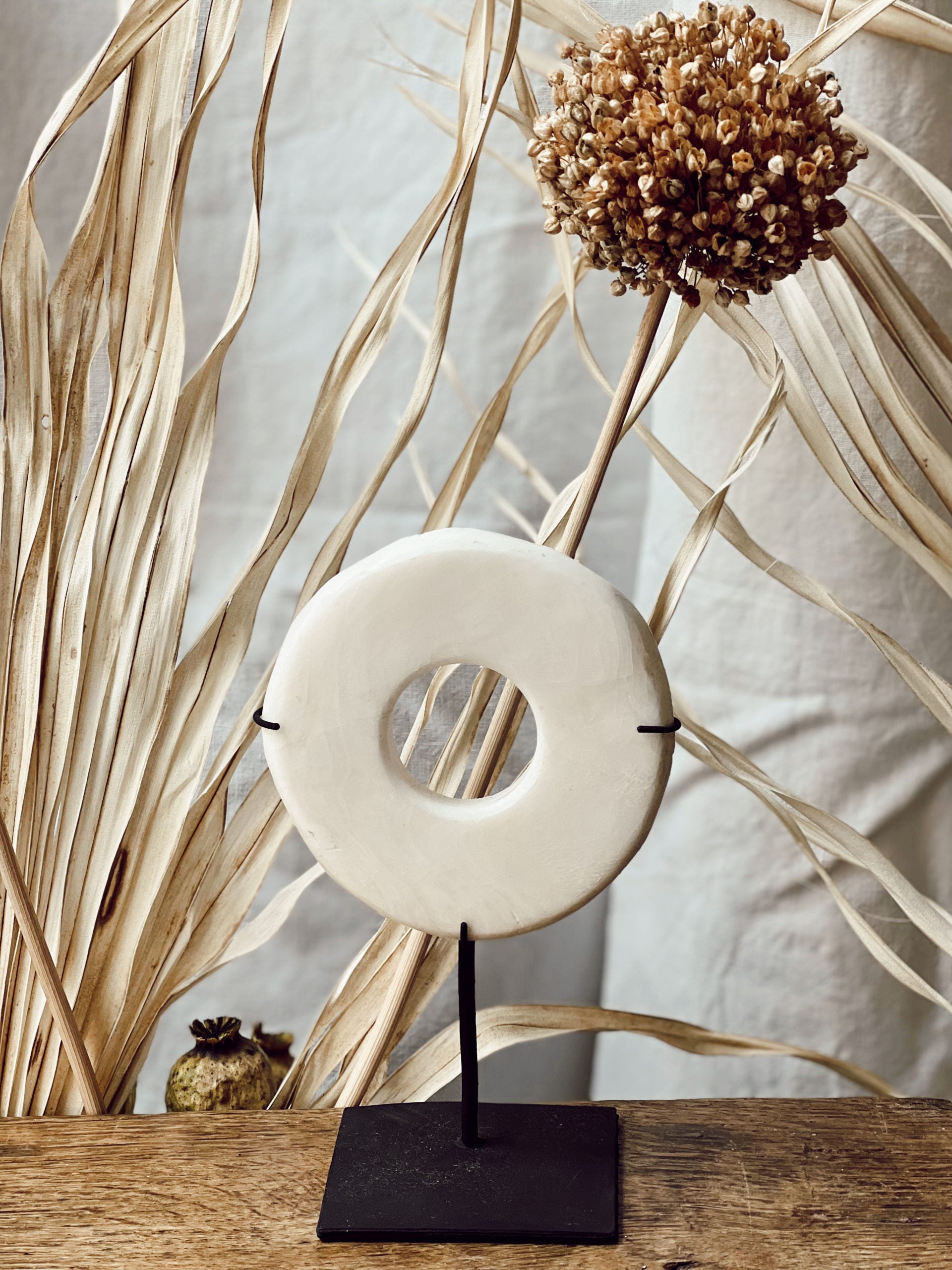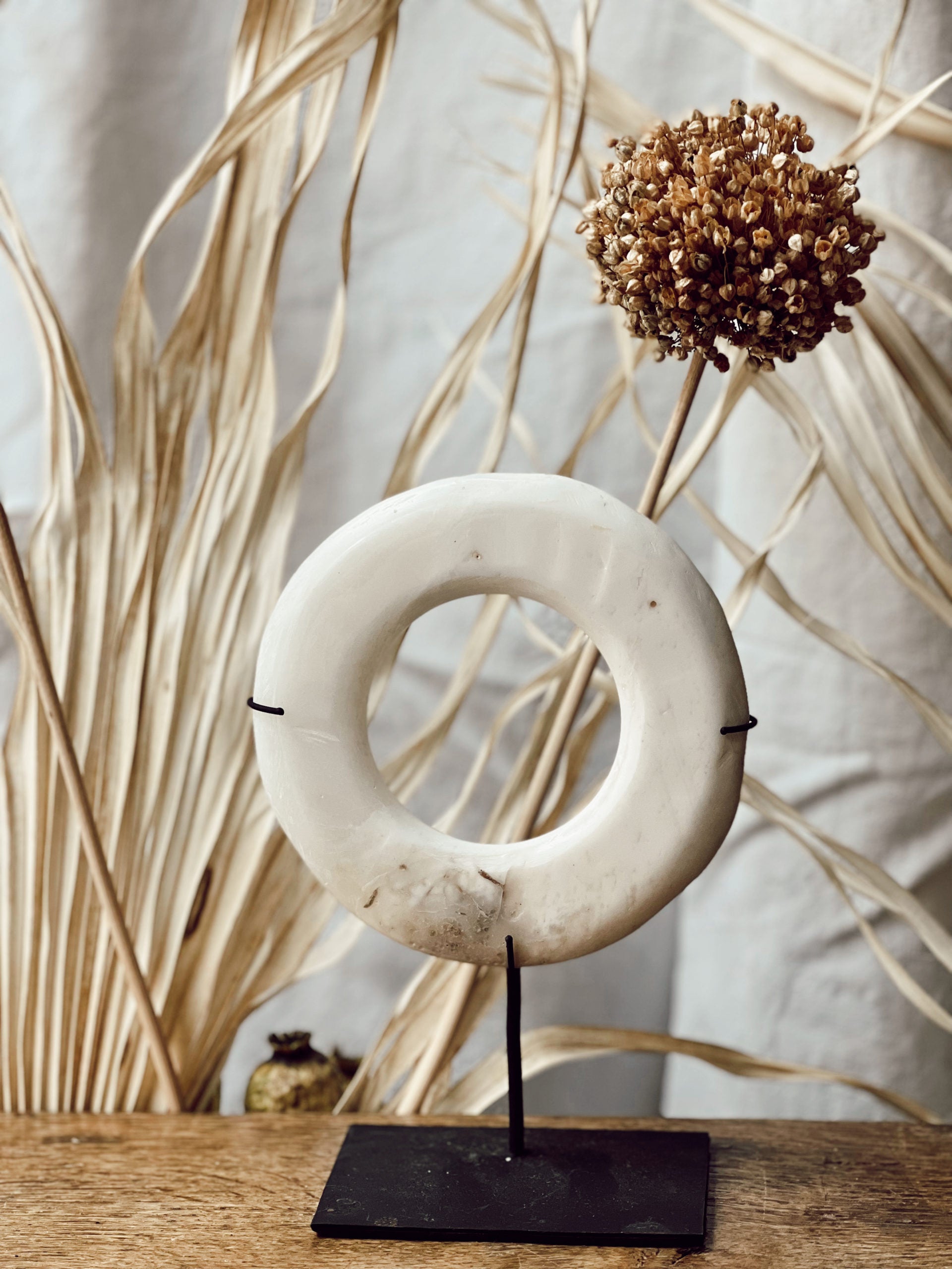 Disque en pierre sur socle