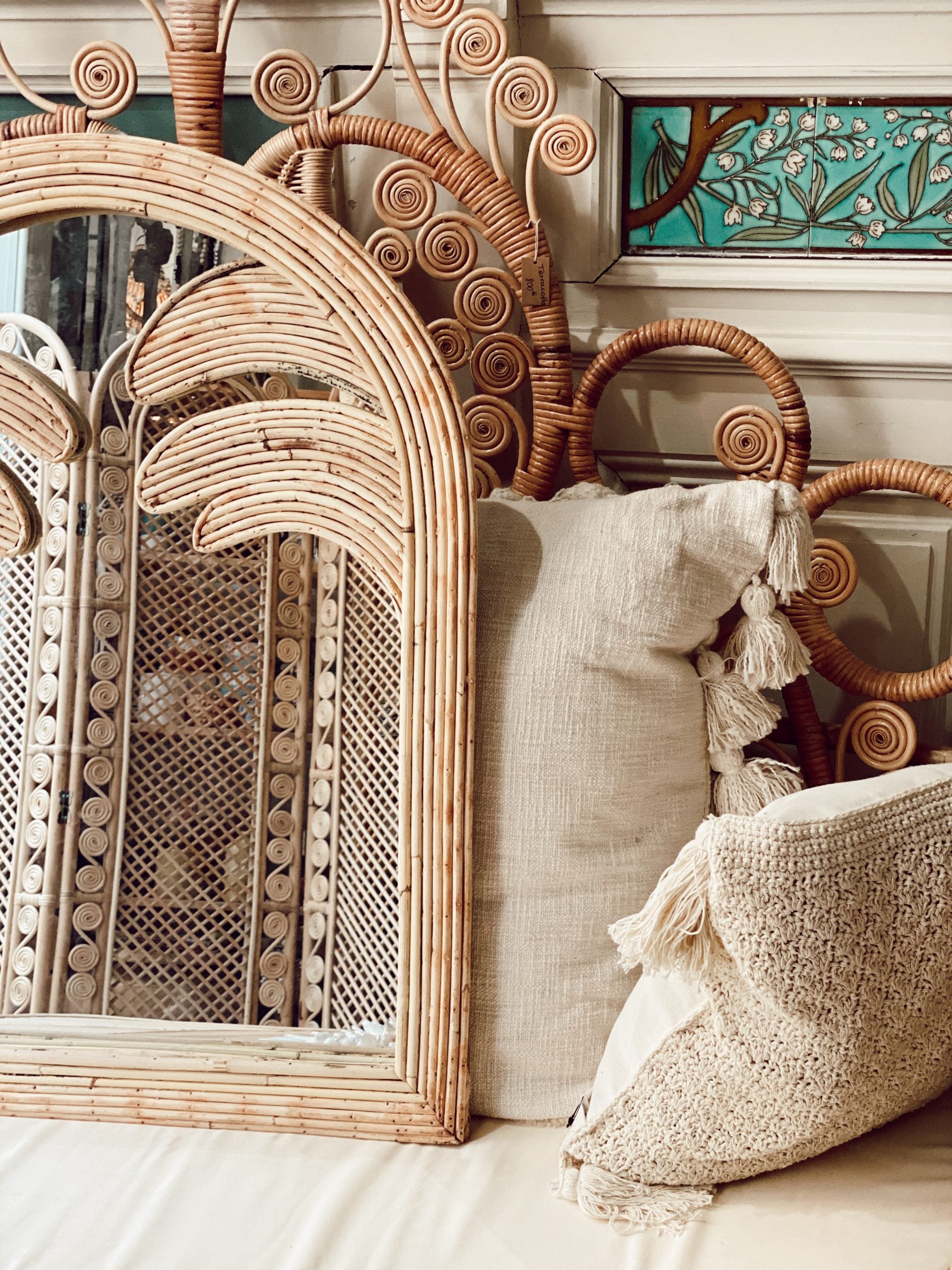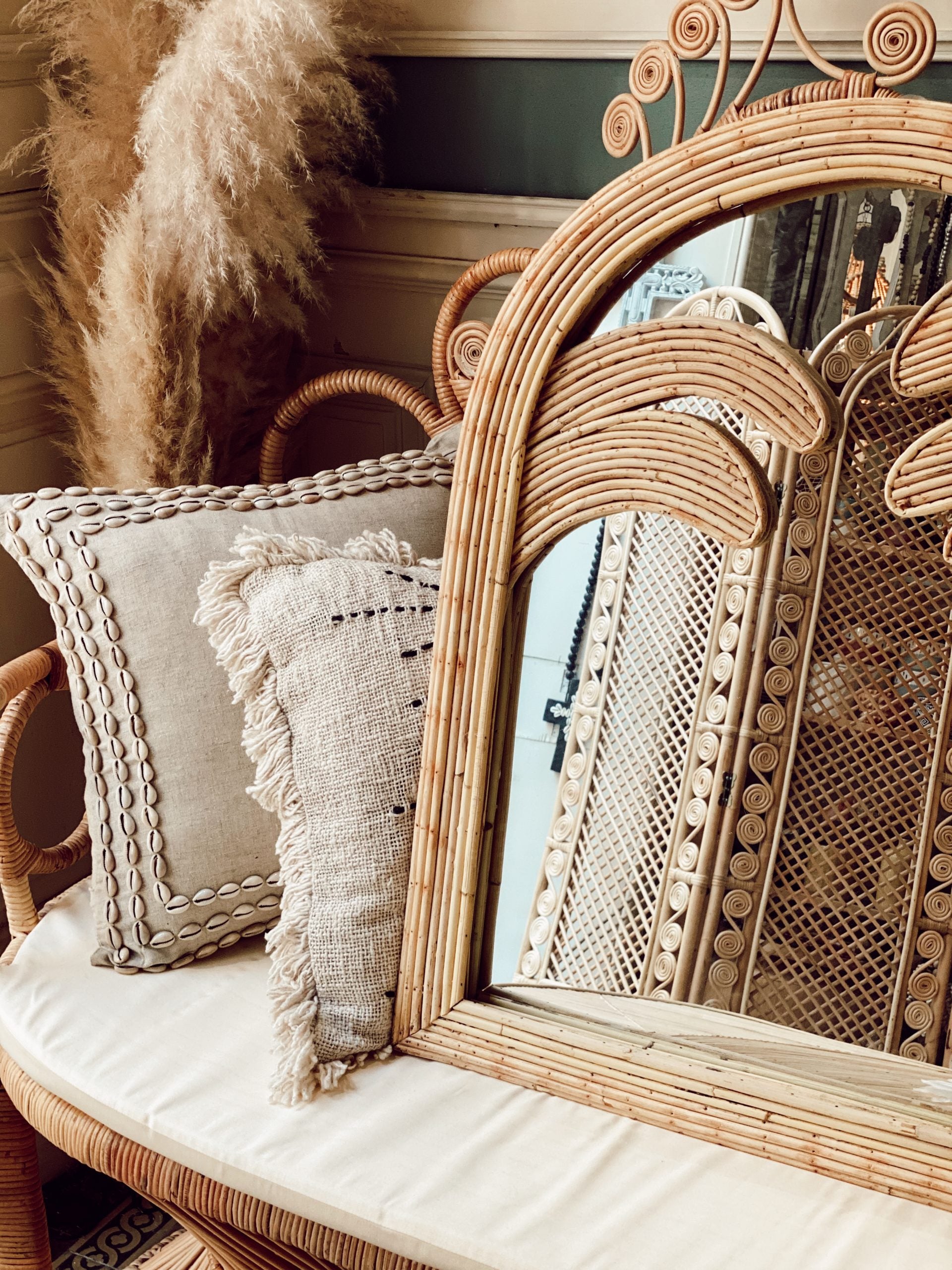 Ce miroir palmier en rotin original et bohème pour votre intérieur.