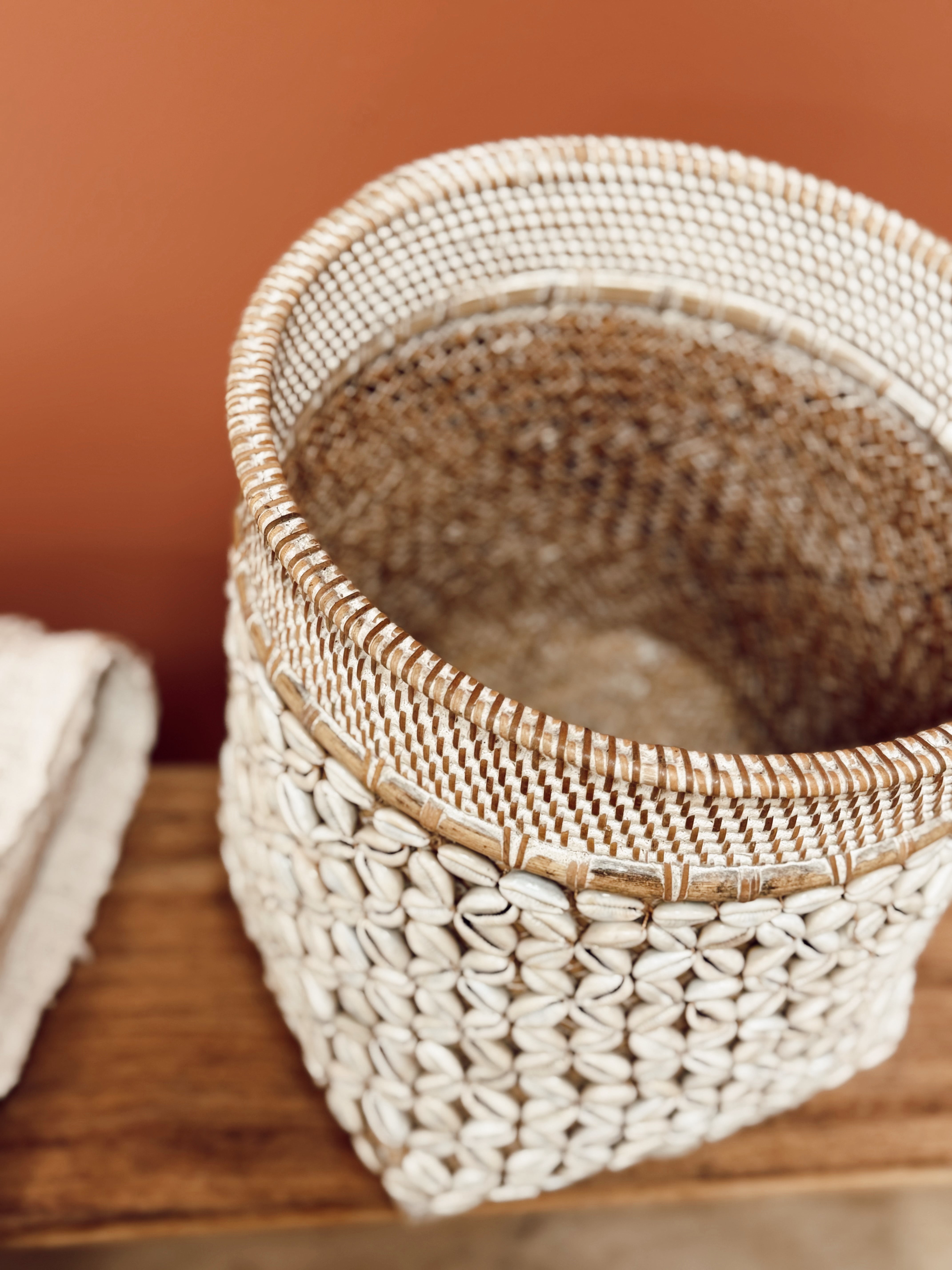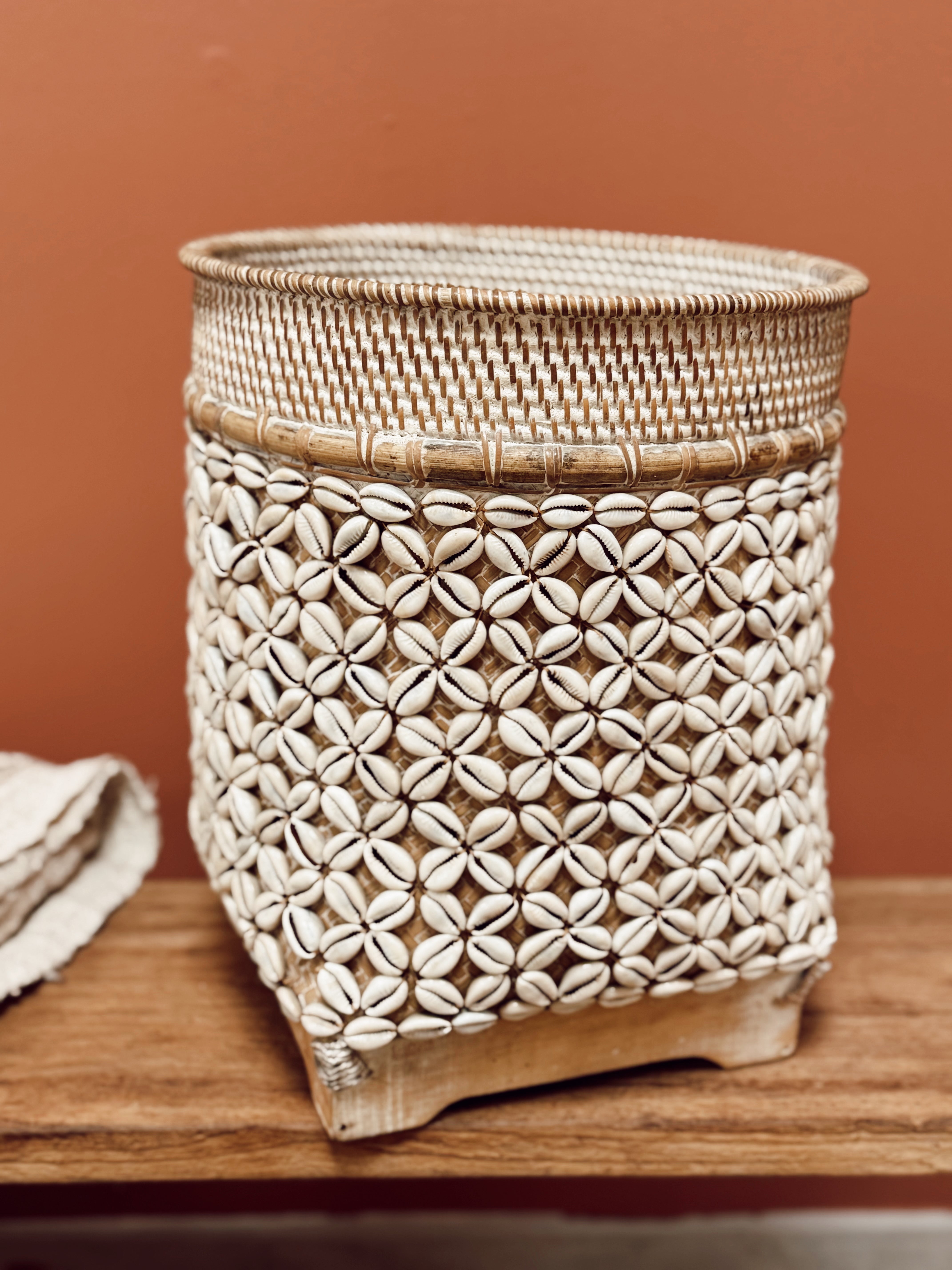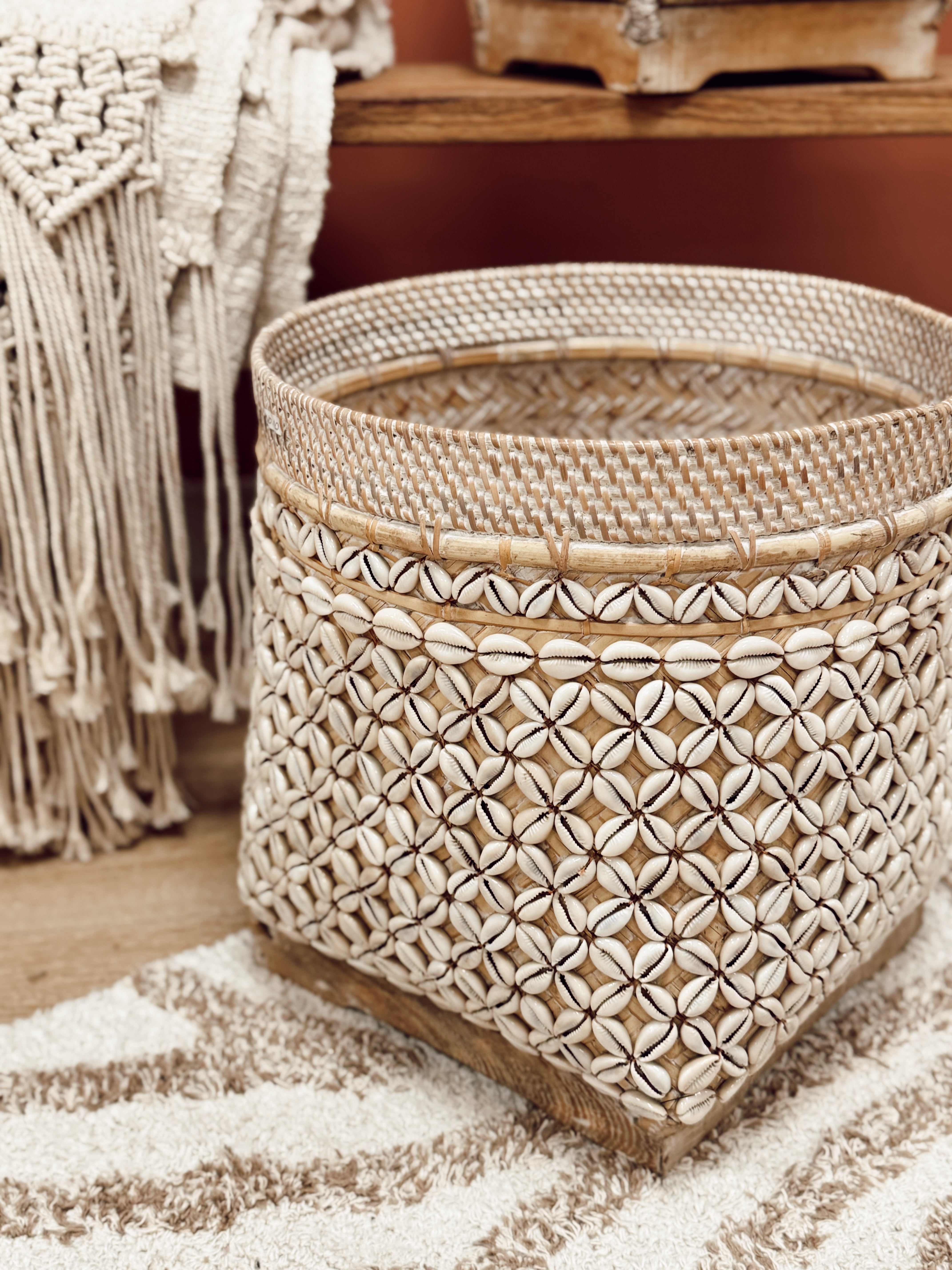 Un panier décoratif d’exception, entièrement fabriqué à la main à Bali à partir de coquillages naturels et de fibres tressées. Chaque pièce est unique et reflète un artisanat ancestral mêlant tradition, patience et minutie. Une vraie pépite à poser dans une salle de bain, une entrée ou un salon bohème.