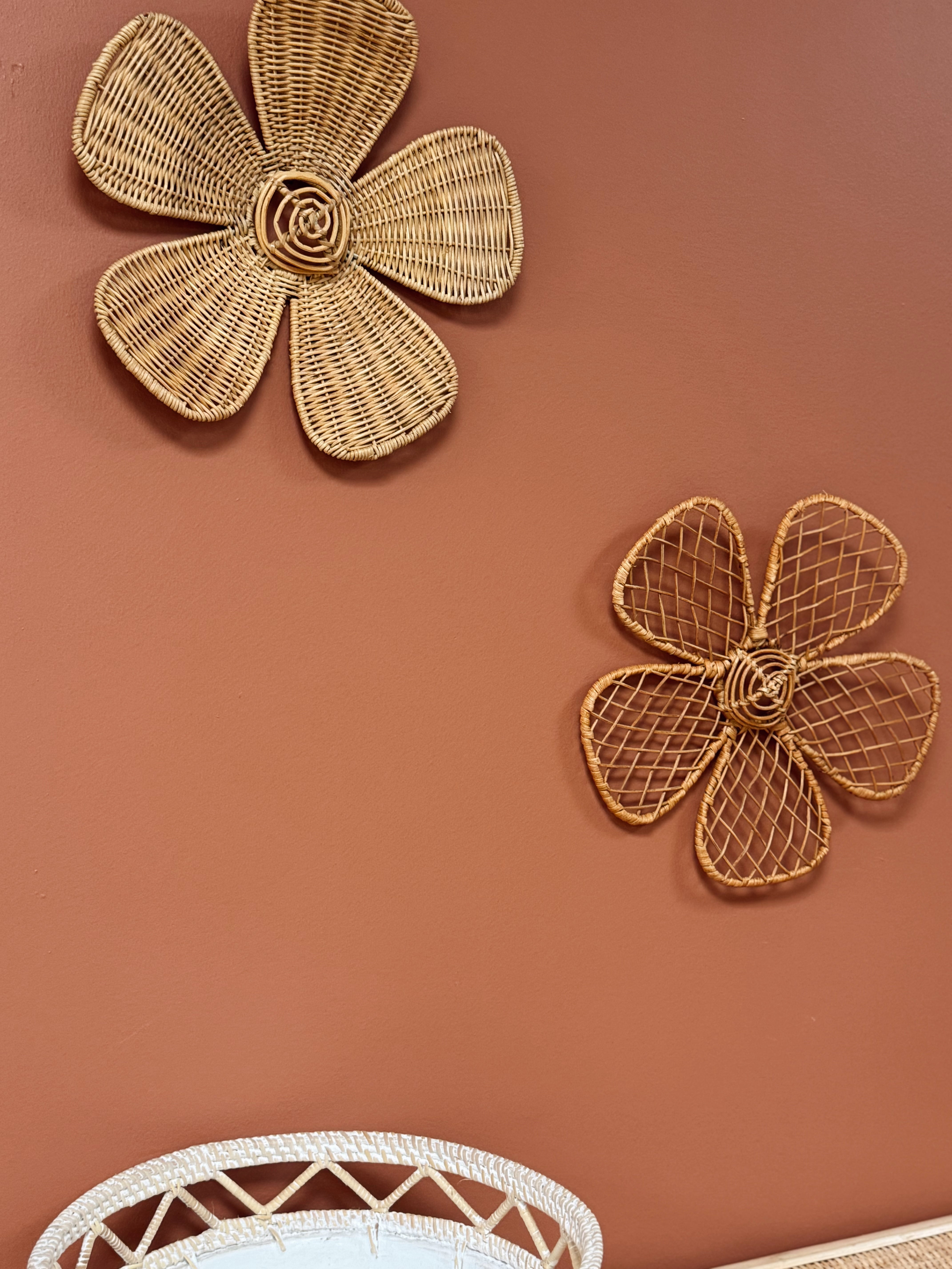 Apportez une touche poétique et artisanale à vos murs avec ce duo de fleurs en rotin tressé. Deux styles complémentaires : l’une pleine et structurée, l’autre ajourée et délicate. À installer côte à côte ou séparément, dans une chambre, une entrée ou un salon bohème.