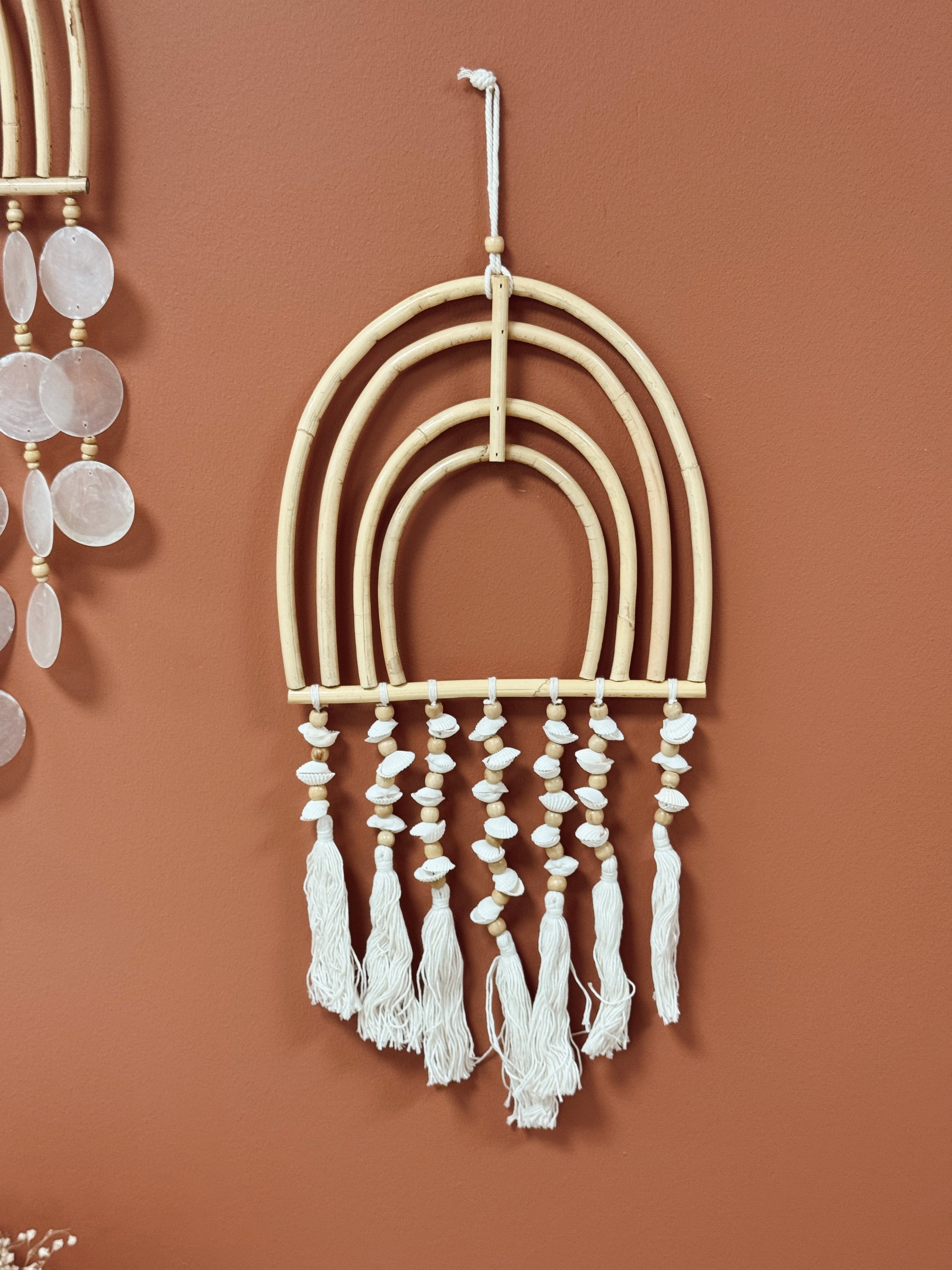 • Matériaux : rotin naturel, coquillages, coton et perles en bois