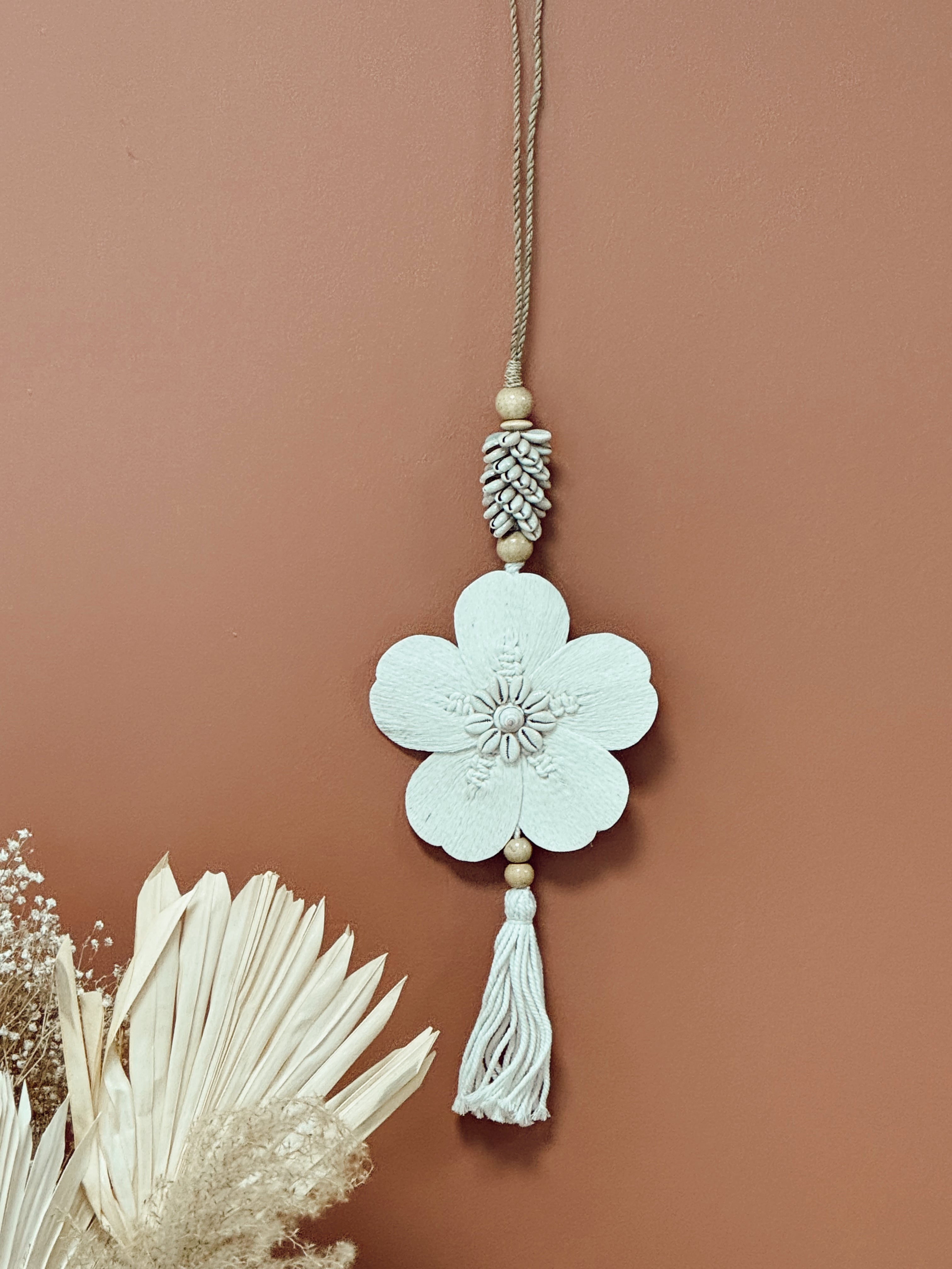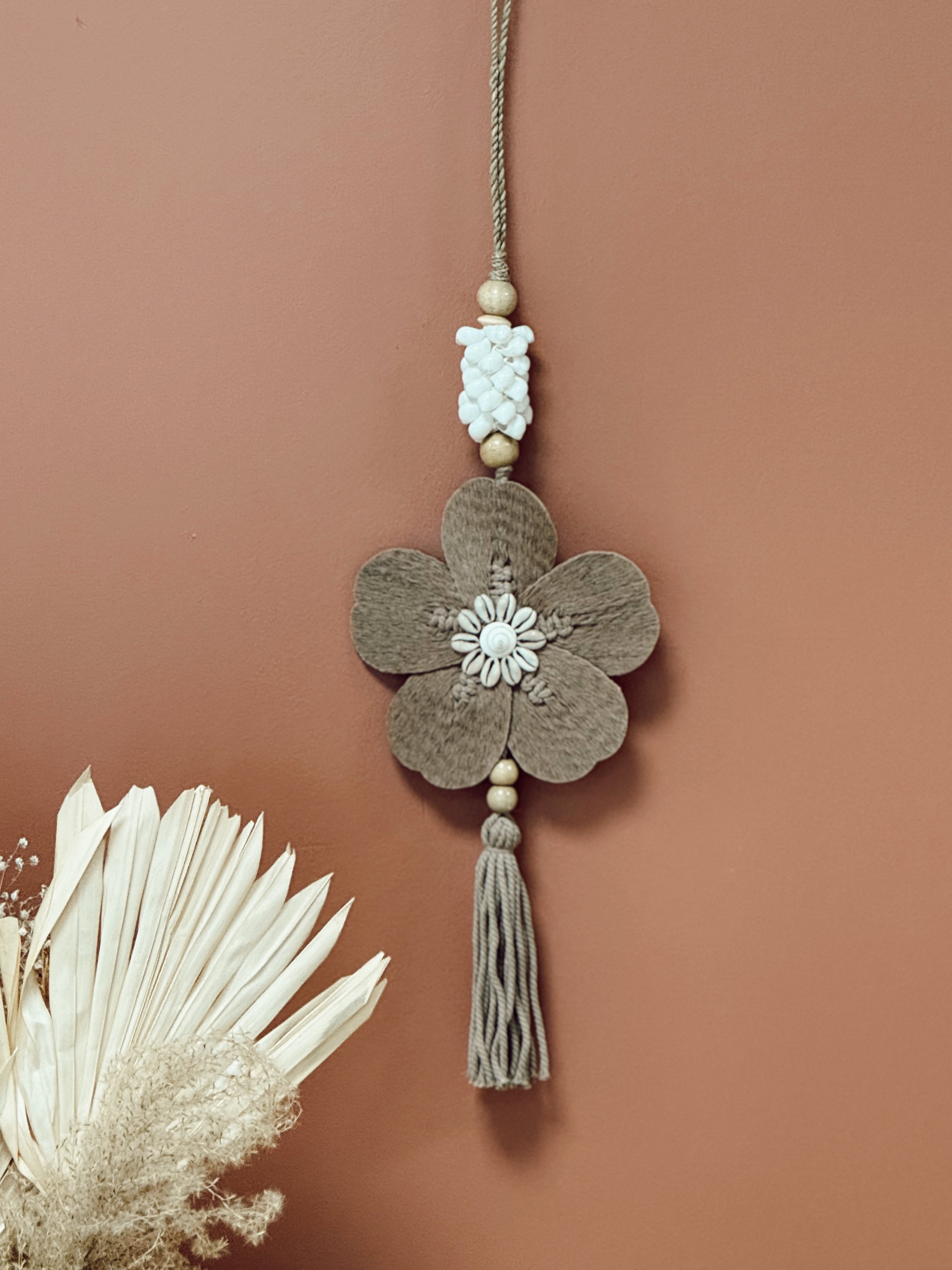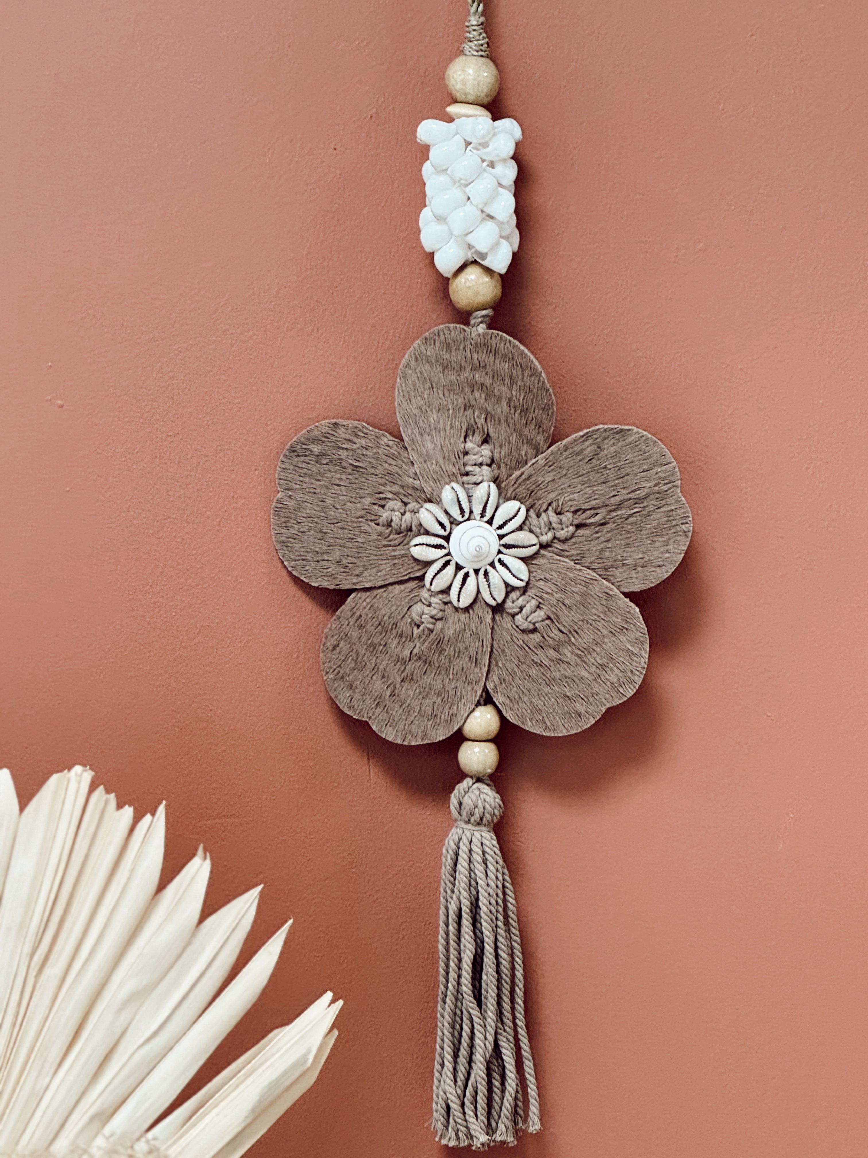 Apportez une touche bohème et naturelle à votre intérieur avec cette suspension murale en forme de fleur, ornée de coquillages et de perles de bois. Un bel objet déco à suspendre à une poignée de porte, au mur d’une chambre ou dans une entrée.