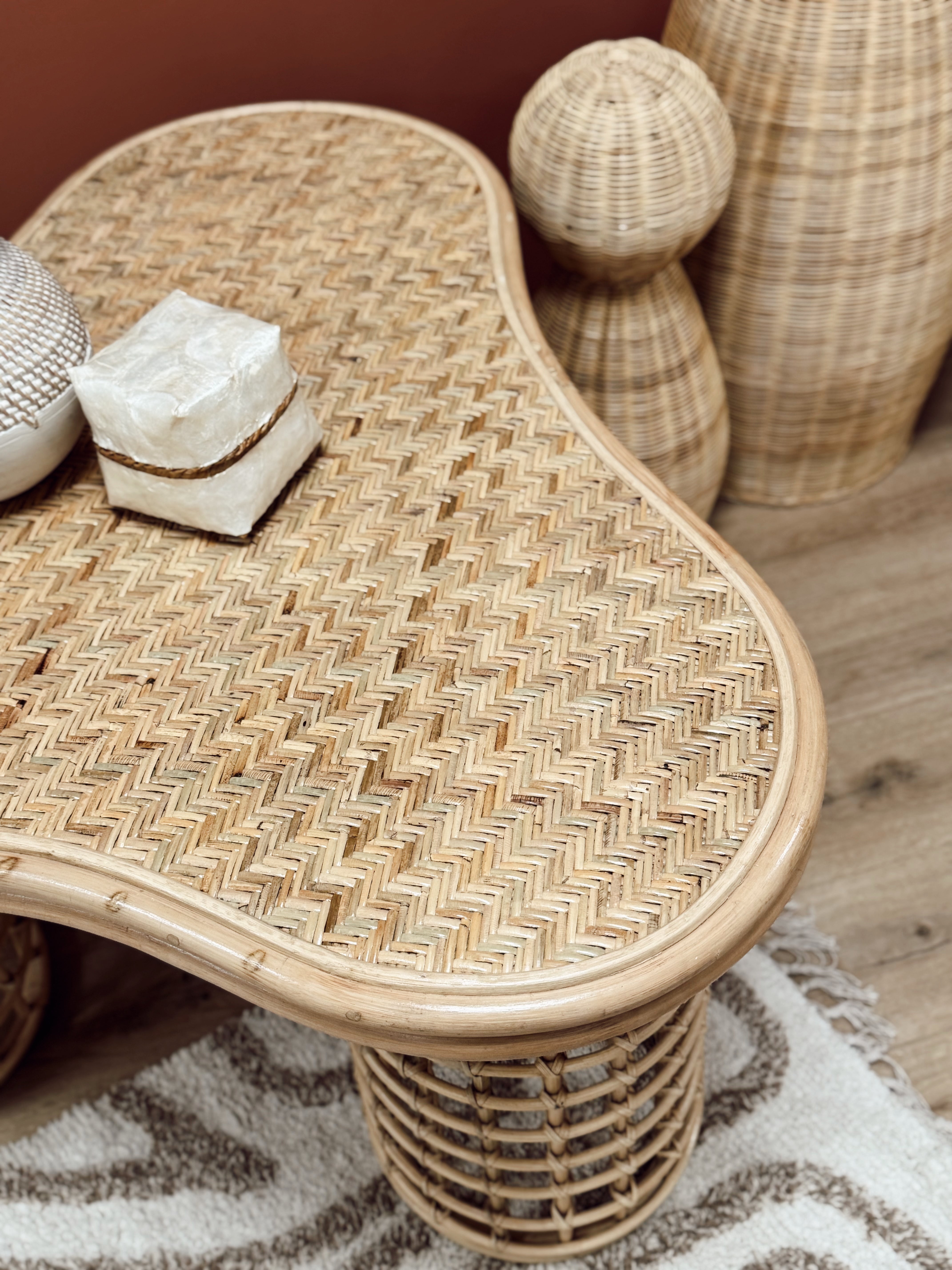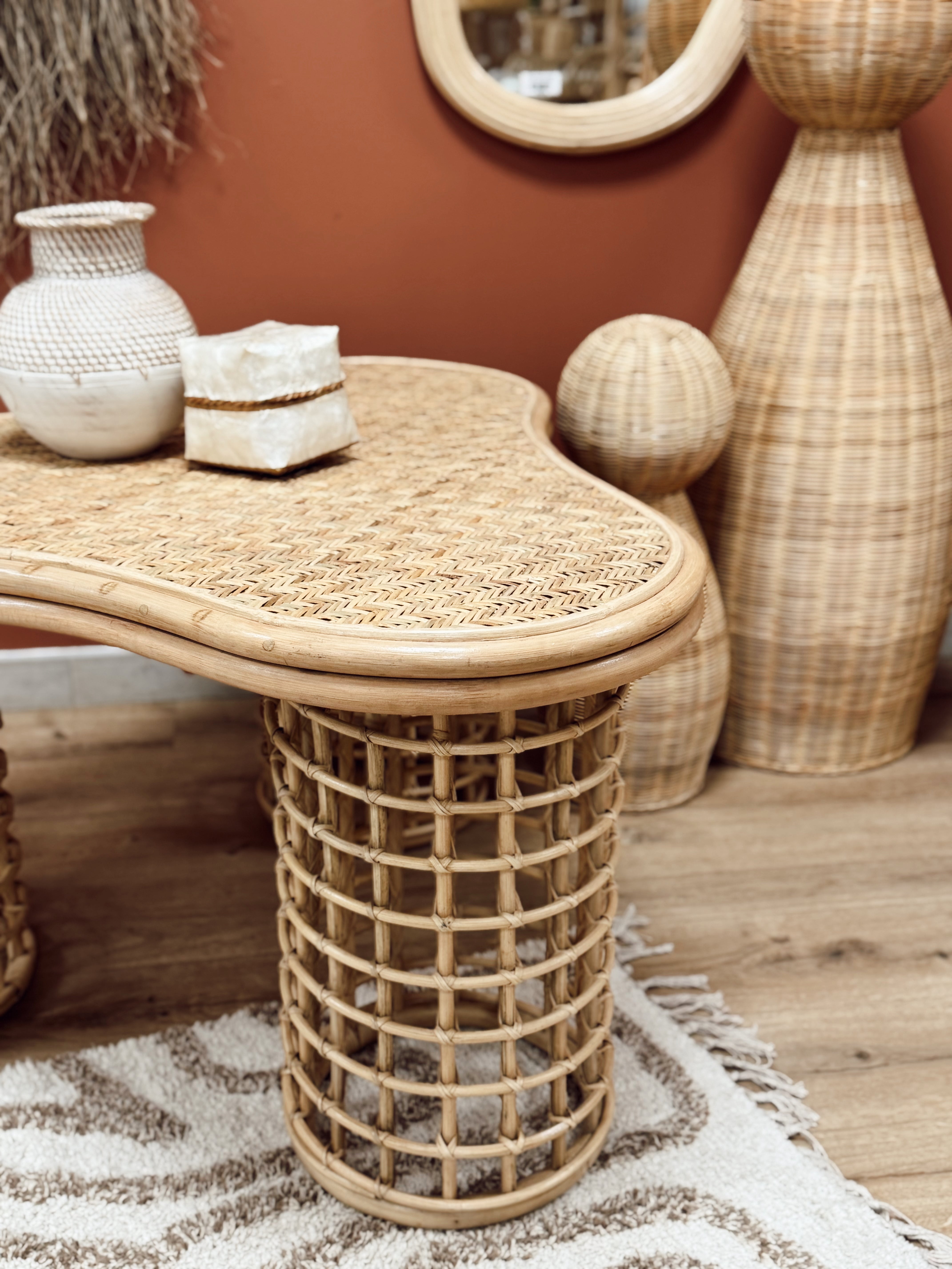 Rotin naturel tressé à la main – structure et pieds ajourés