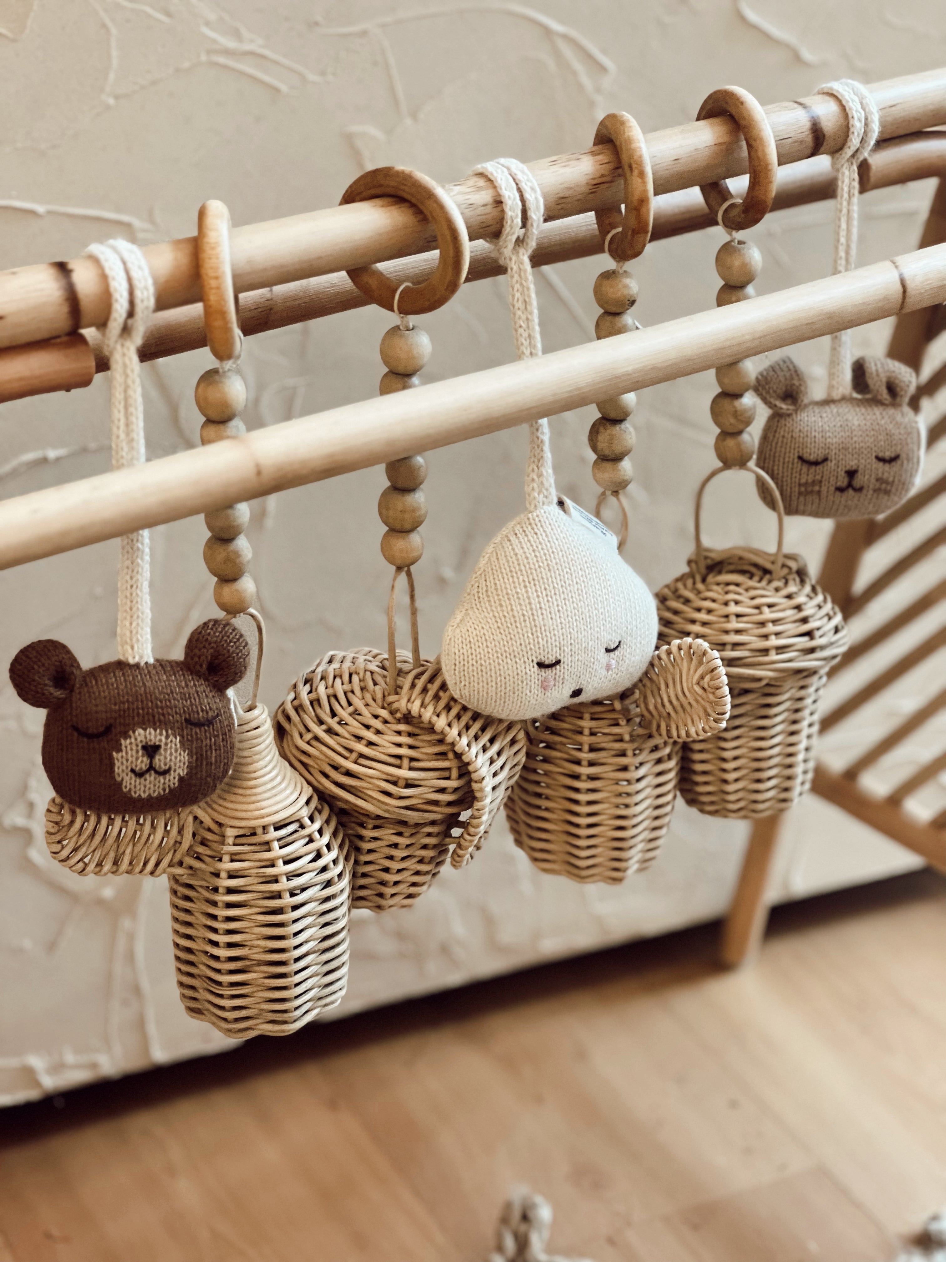 Our rabbit rattle accompanies baby everywhere. With its easy-to-tie cord, it can be hung on the activity arch, on the bars of the bed, on the stroller or even on the cozy.