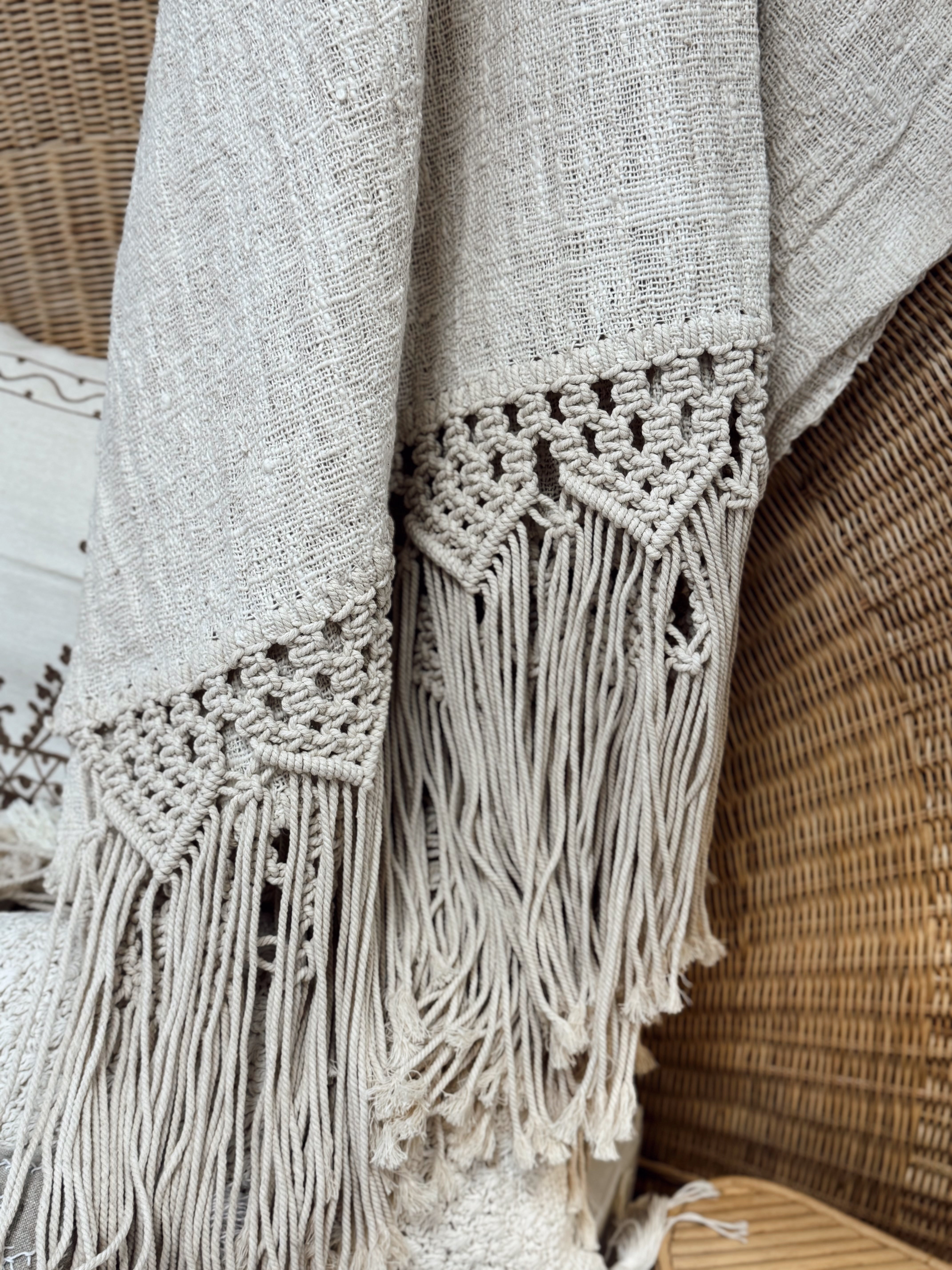 Ces plaids sont fabriqués artisanalement à Bali. Chaque produit est unique ! Parce que nous adorons les fabrications artisanales et chaque imperfection, les produits peuvent présenter des variations de teintes, d'aspect et de dimensions.