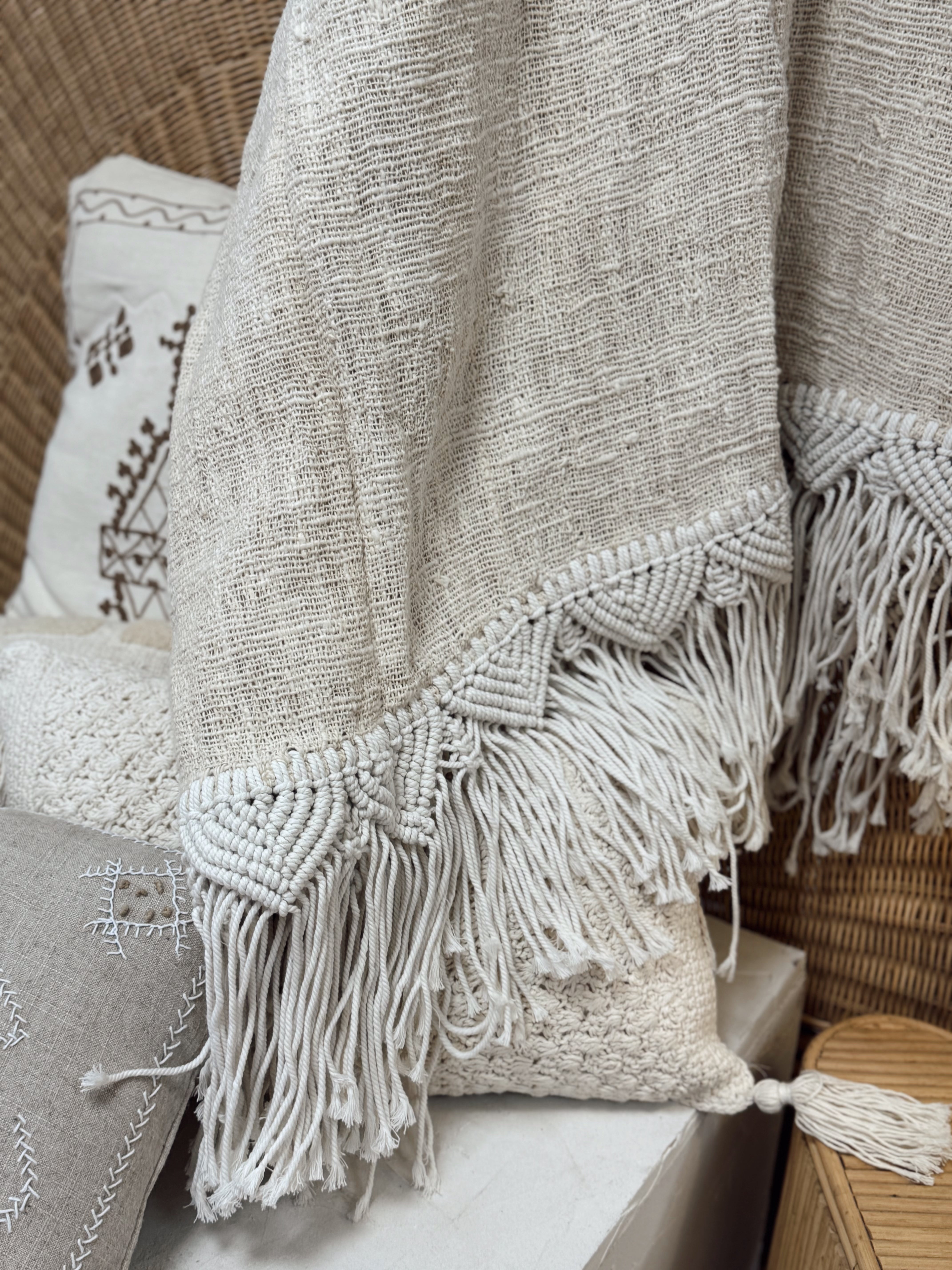 Ces plaids sont fabriqués artisanalement à Bali. Chaque produit est unique ! Parce que nous adorons les fabrications artisanales et chaque imperfection, les produits peuvent présenter des variations de teintes, d'aspect et de dimensions.