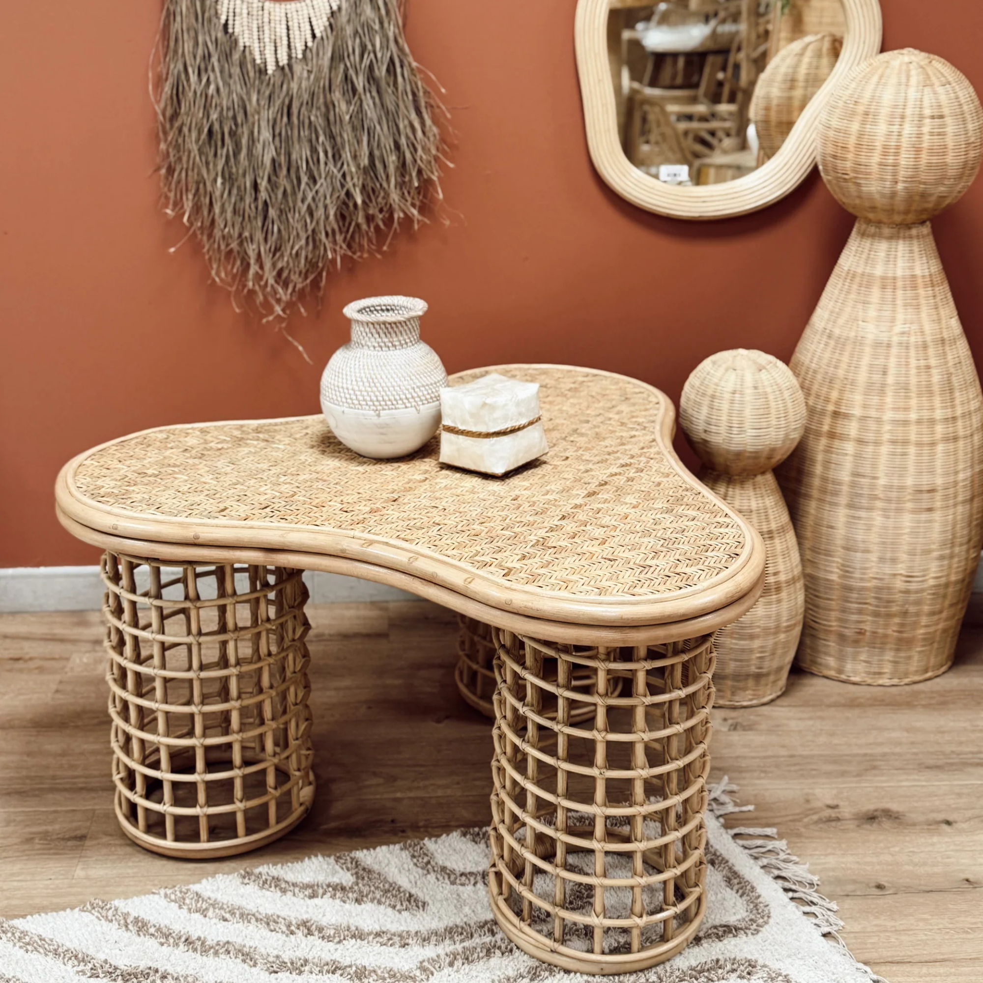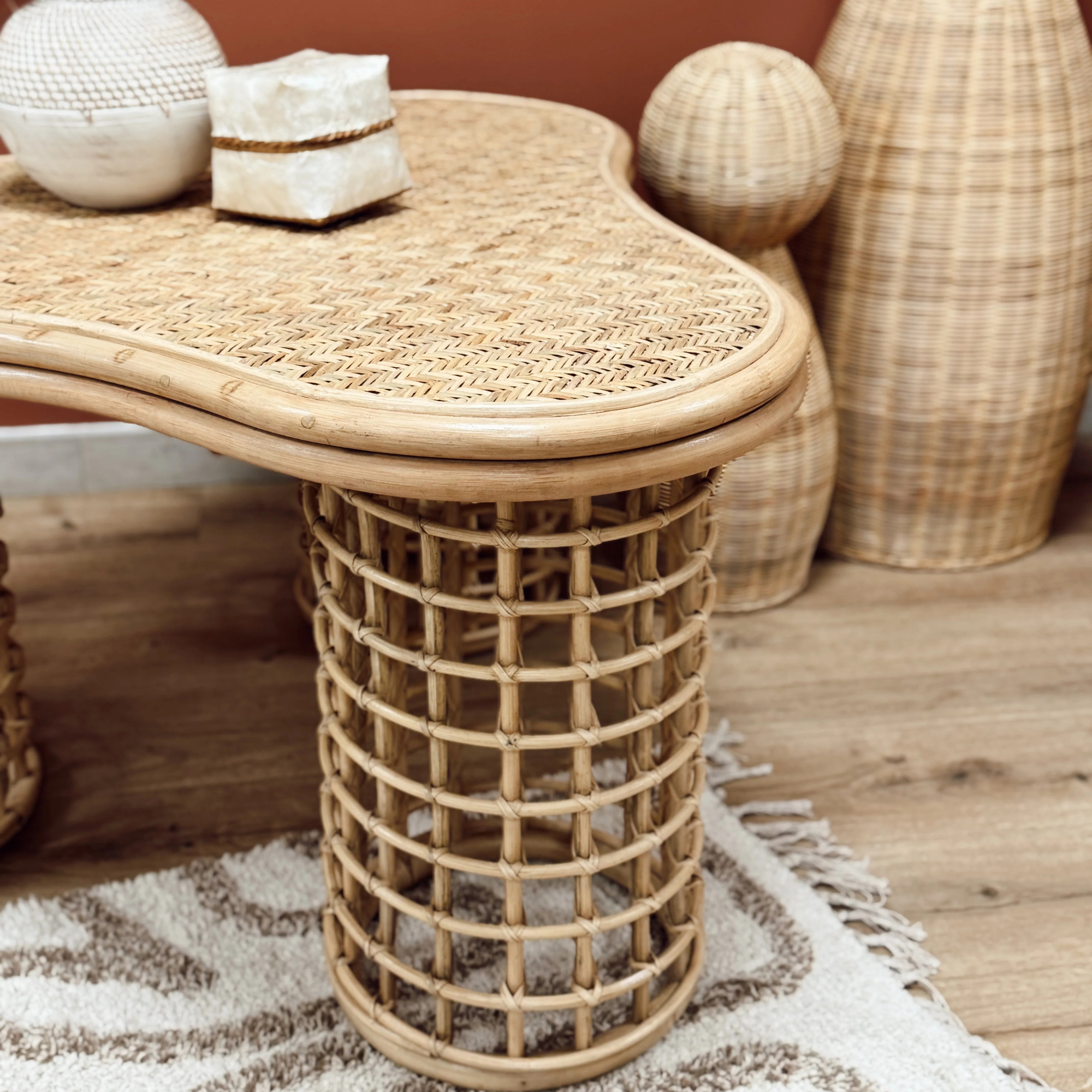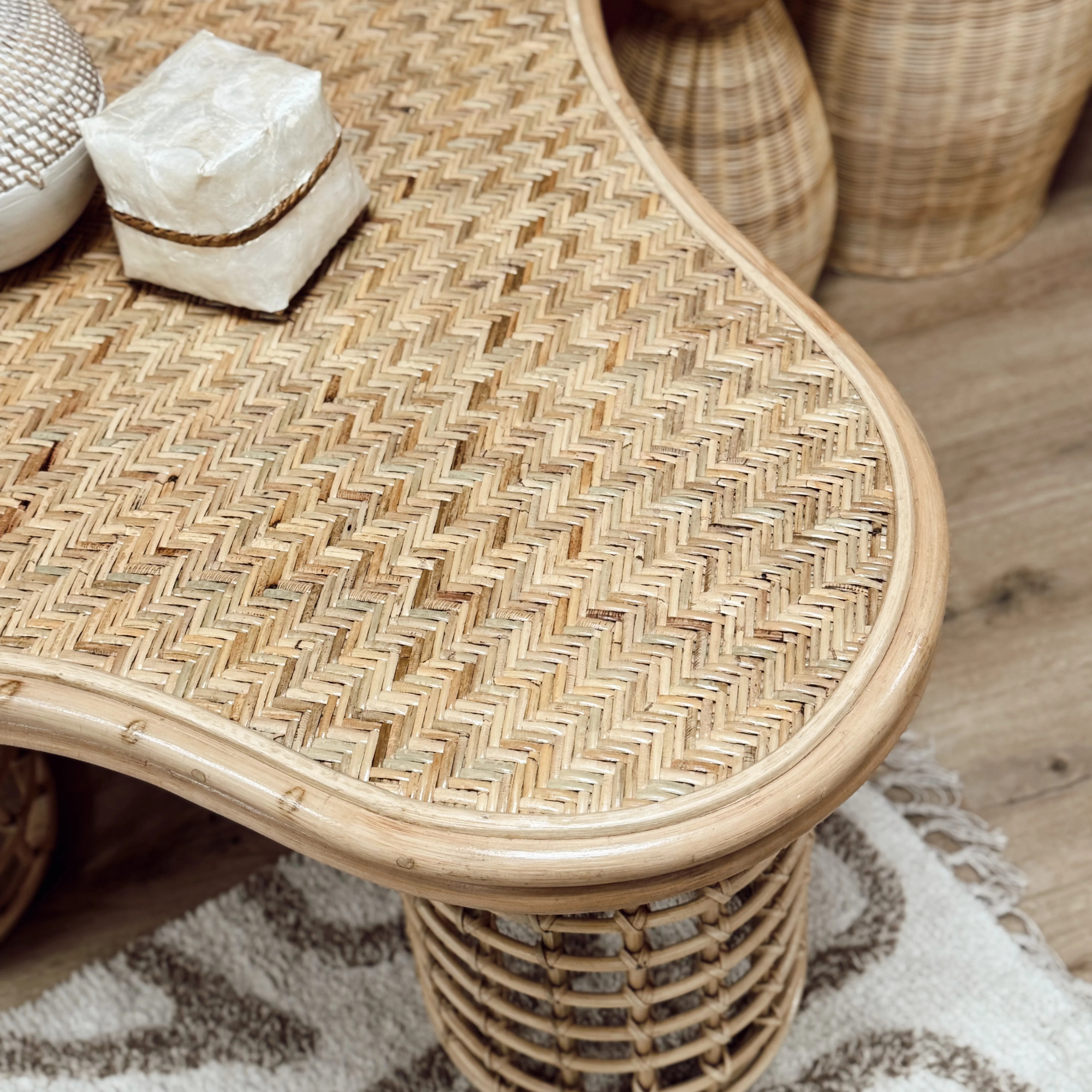 Rotin naturel tressé à la main – structure et pieds ajourés