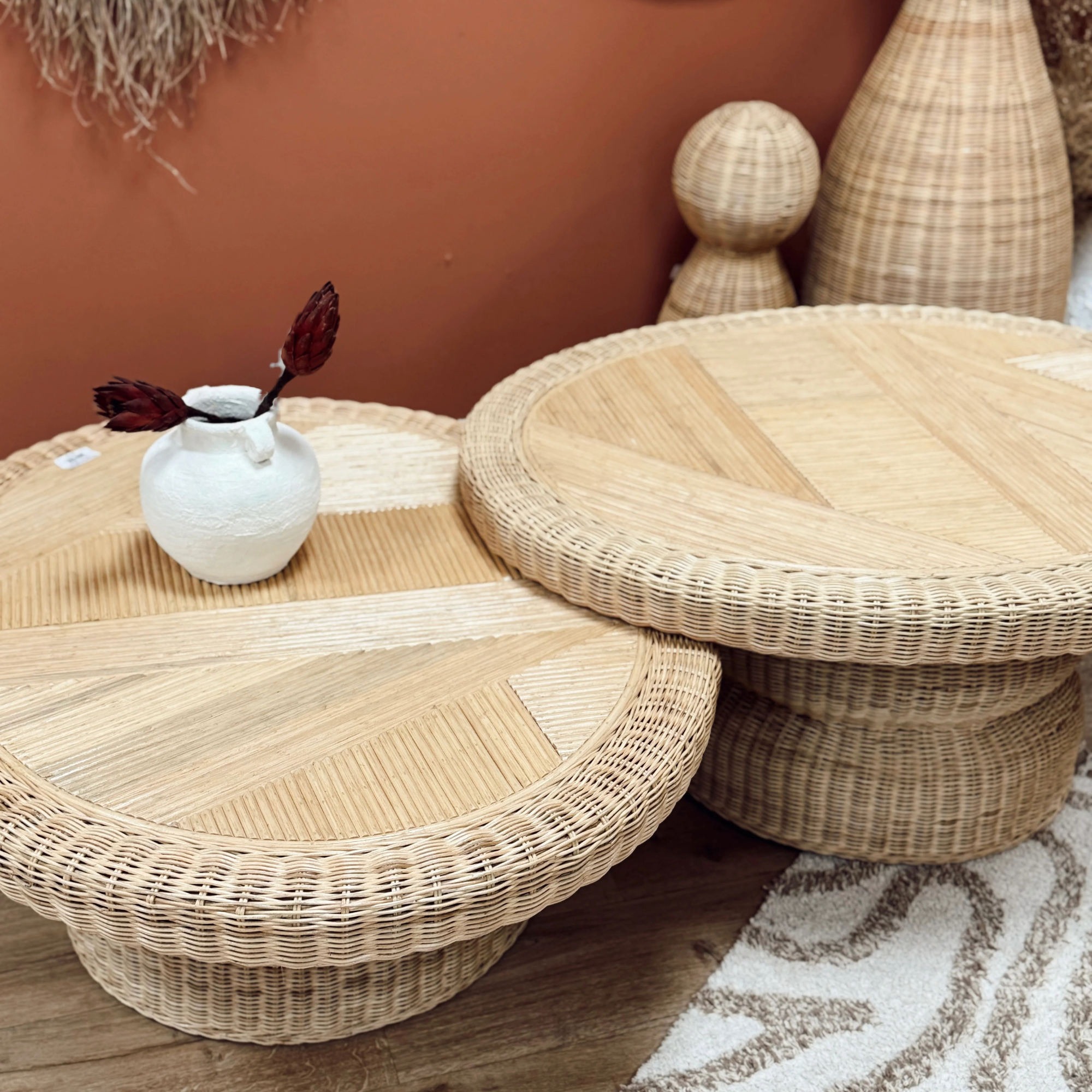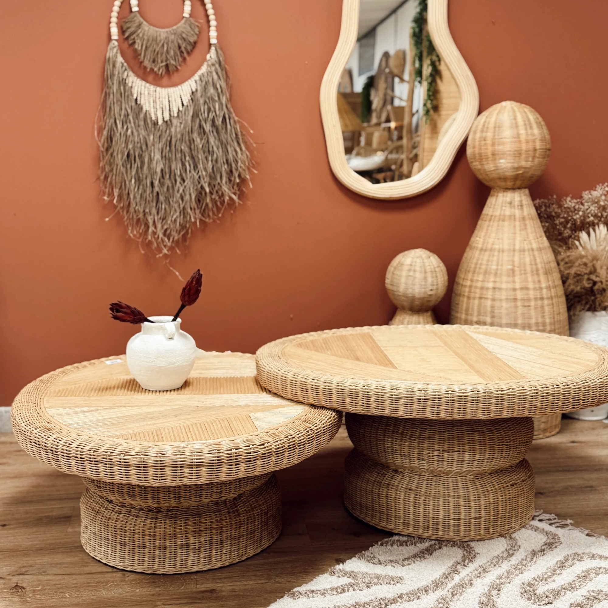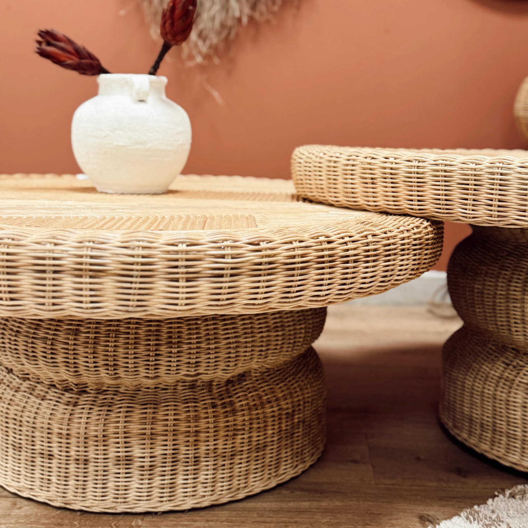 Son tressage en rotin naturel et ses formes généreuses en font une création audacieuse et organique, parfaite pour un intérieur bohème chic, aux inspirations balinaises.