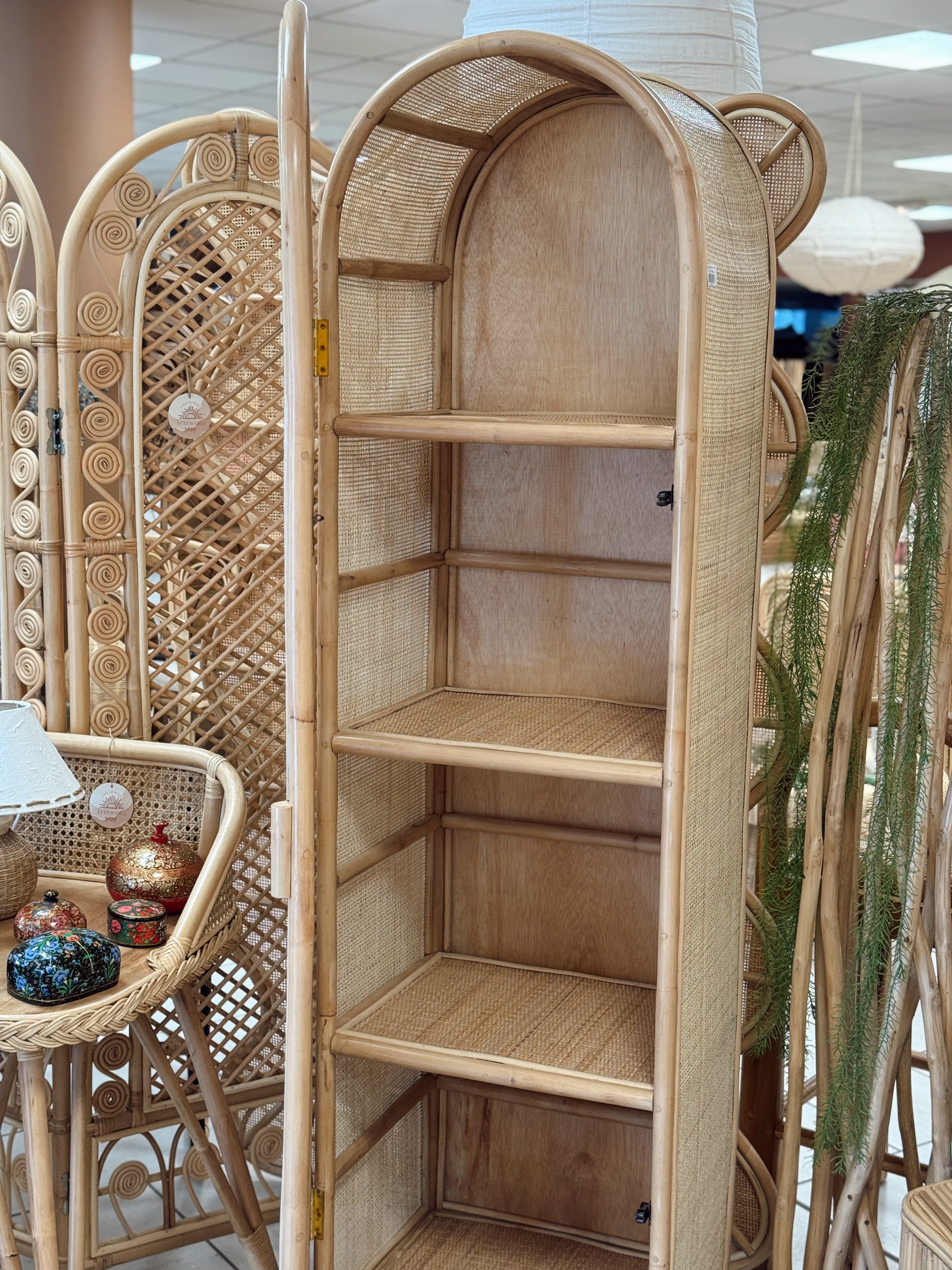 Ce cabinet en rotin séduit par ses lignes arrondies et son cannage ajouré, qui évoquent l’art de vivre balinais dans toute sa simplicité. Fabriqué à la main à Bali, il incarne le savoir-faire artisanal local et s’intègre avec élégance dans tous les intérieurs.