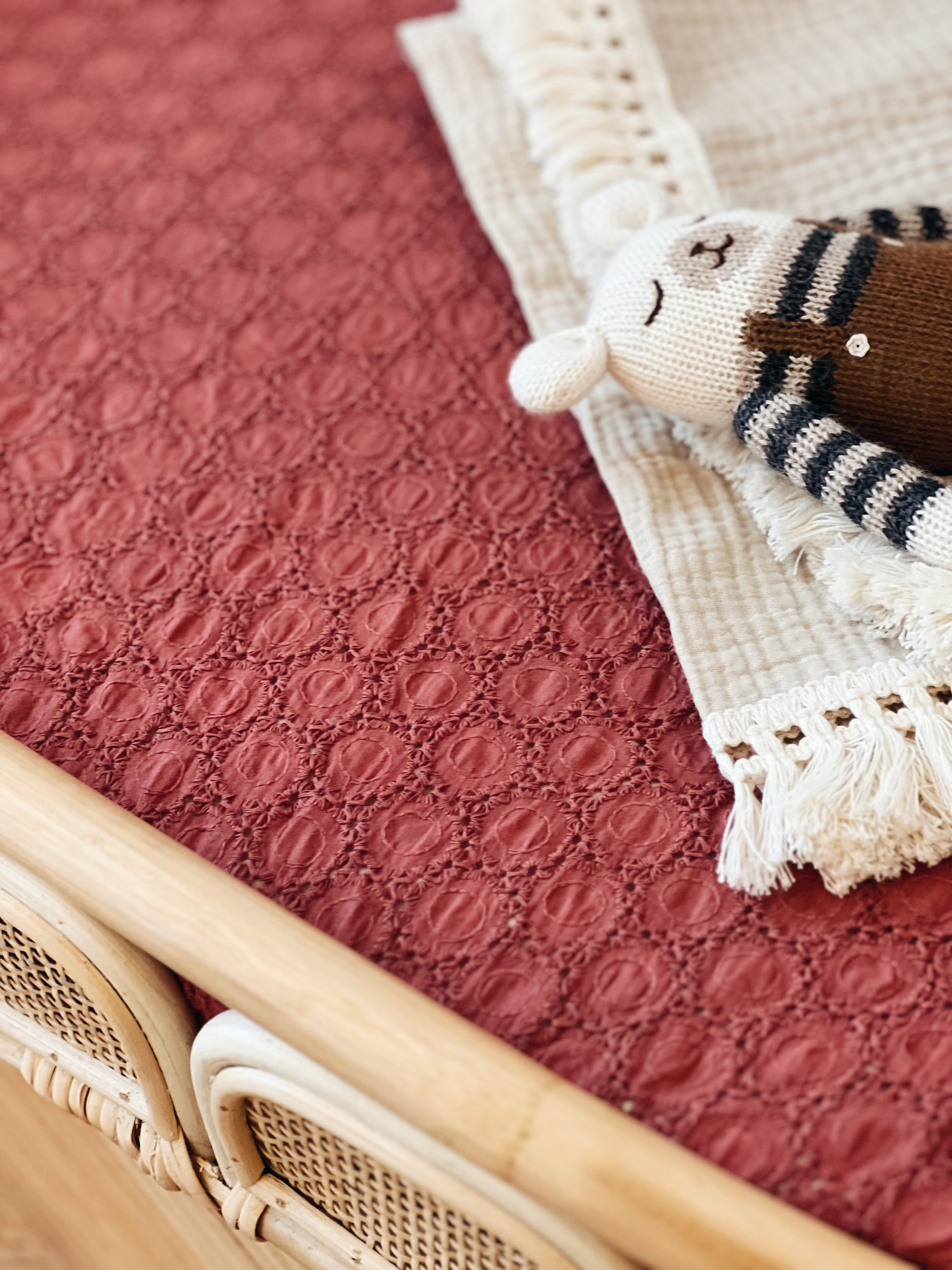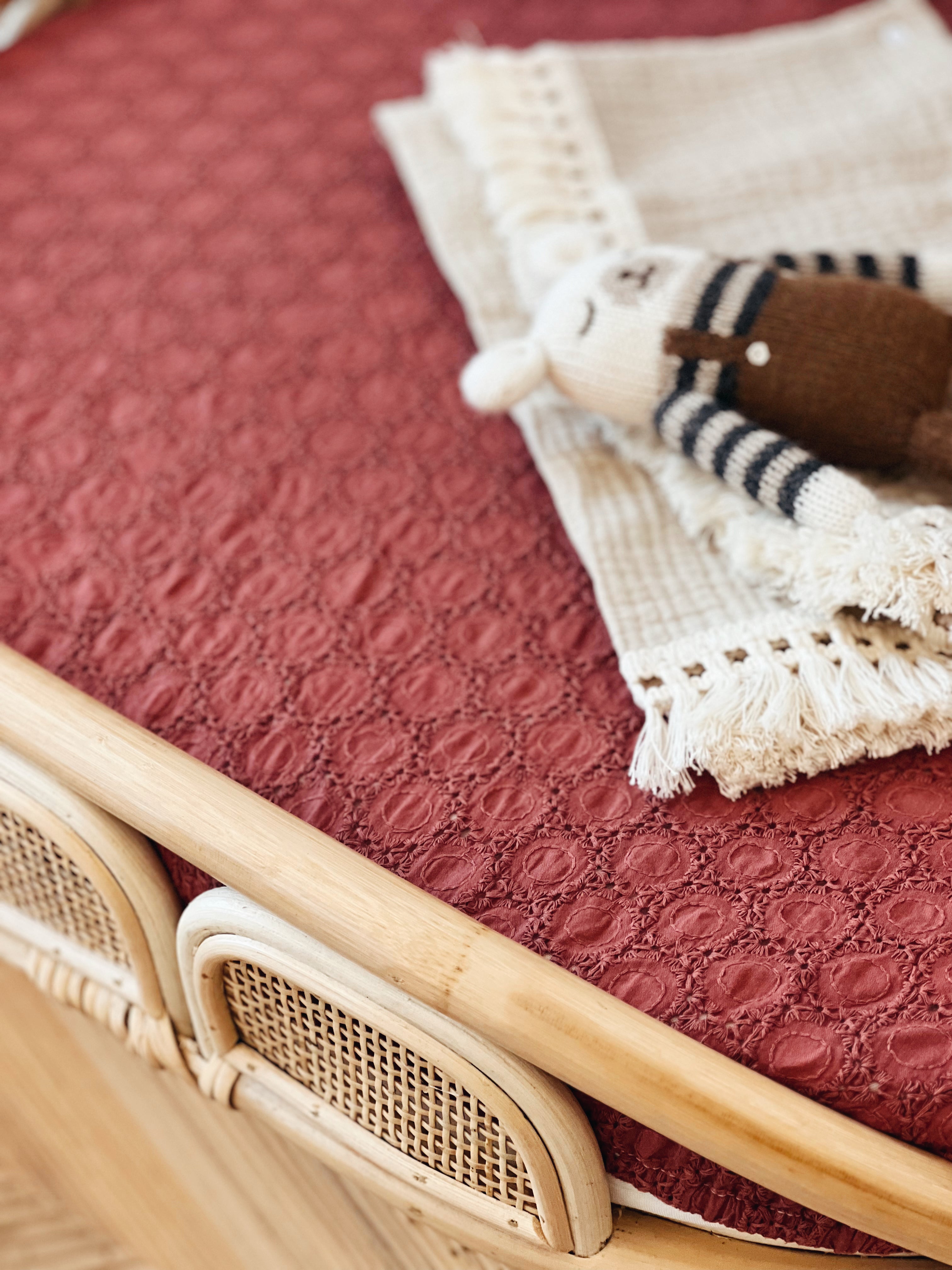 Notre housse de matelas à langer est faite en coton, une matière toute douce. De quoi changer bébé dans le plus grand des conforts.