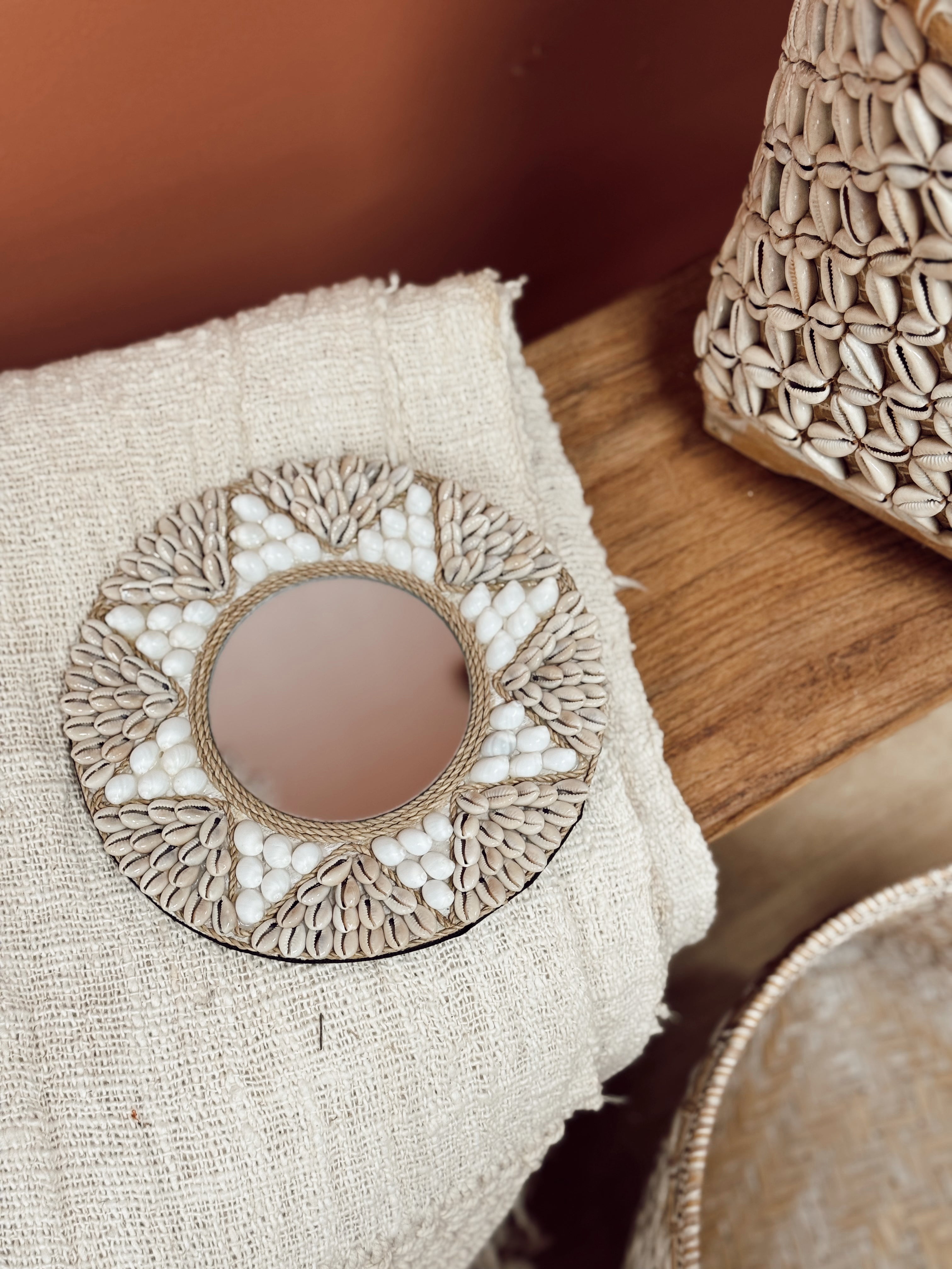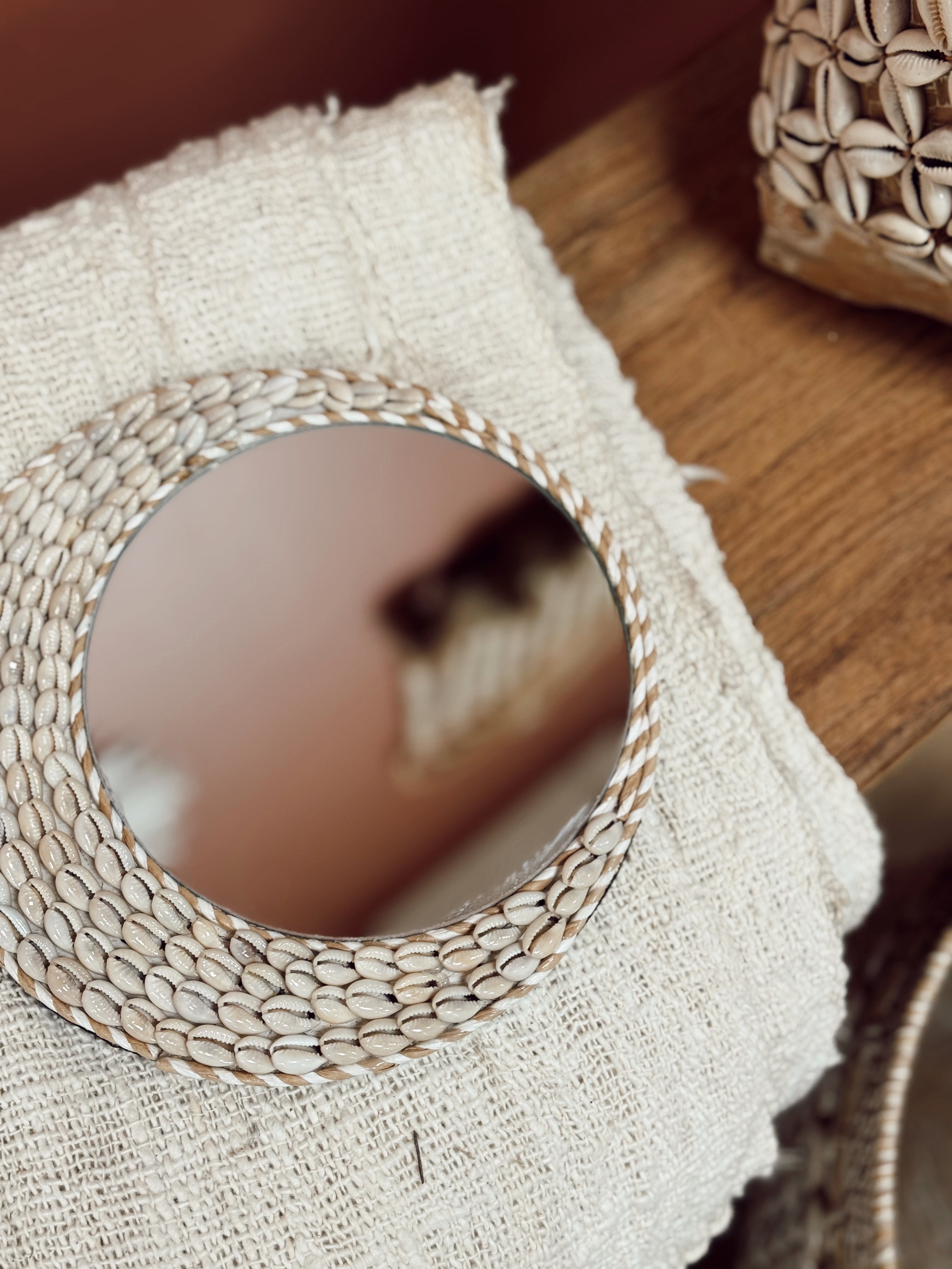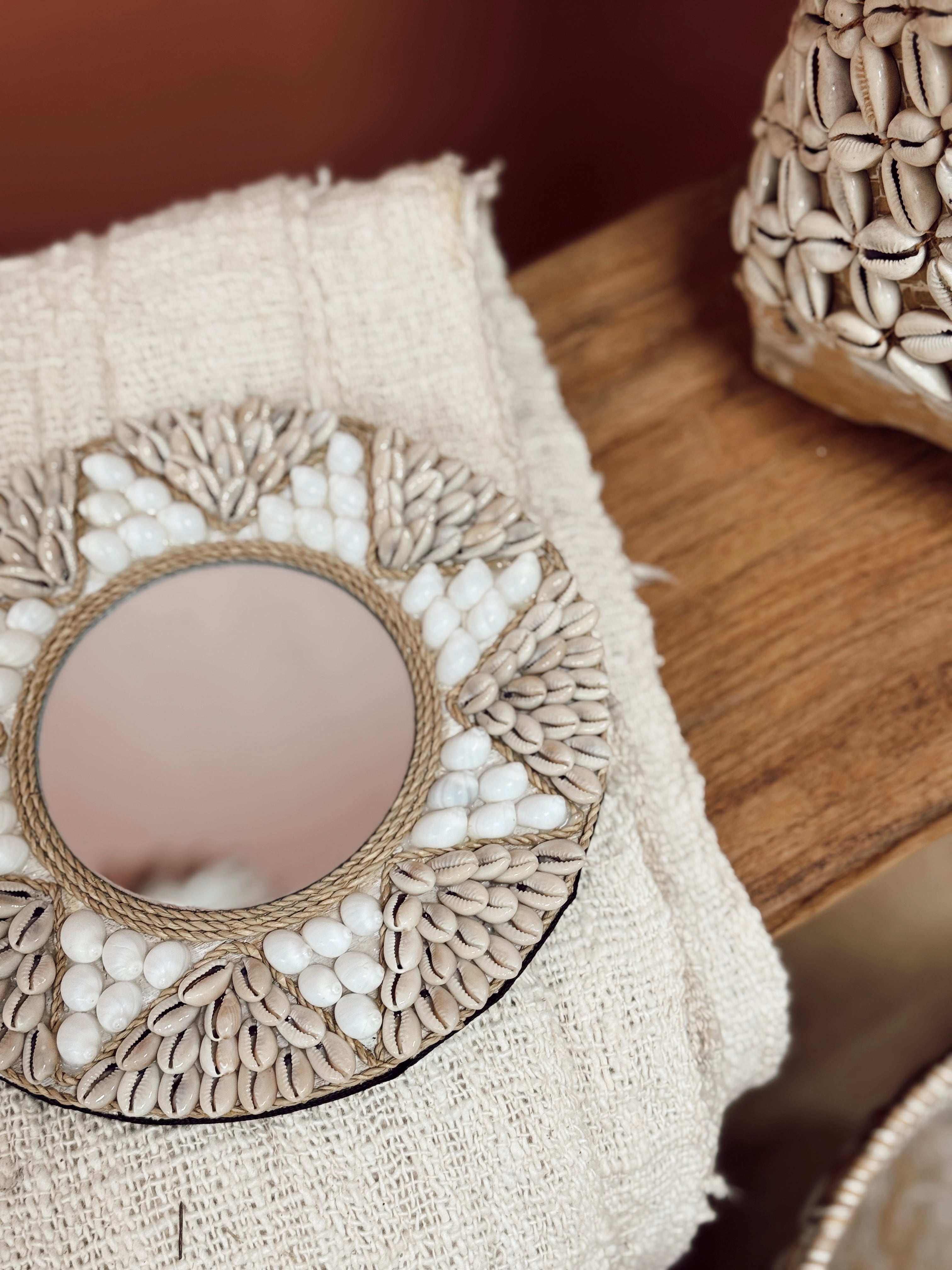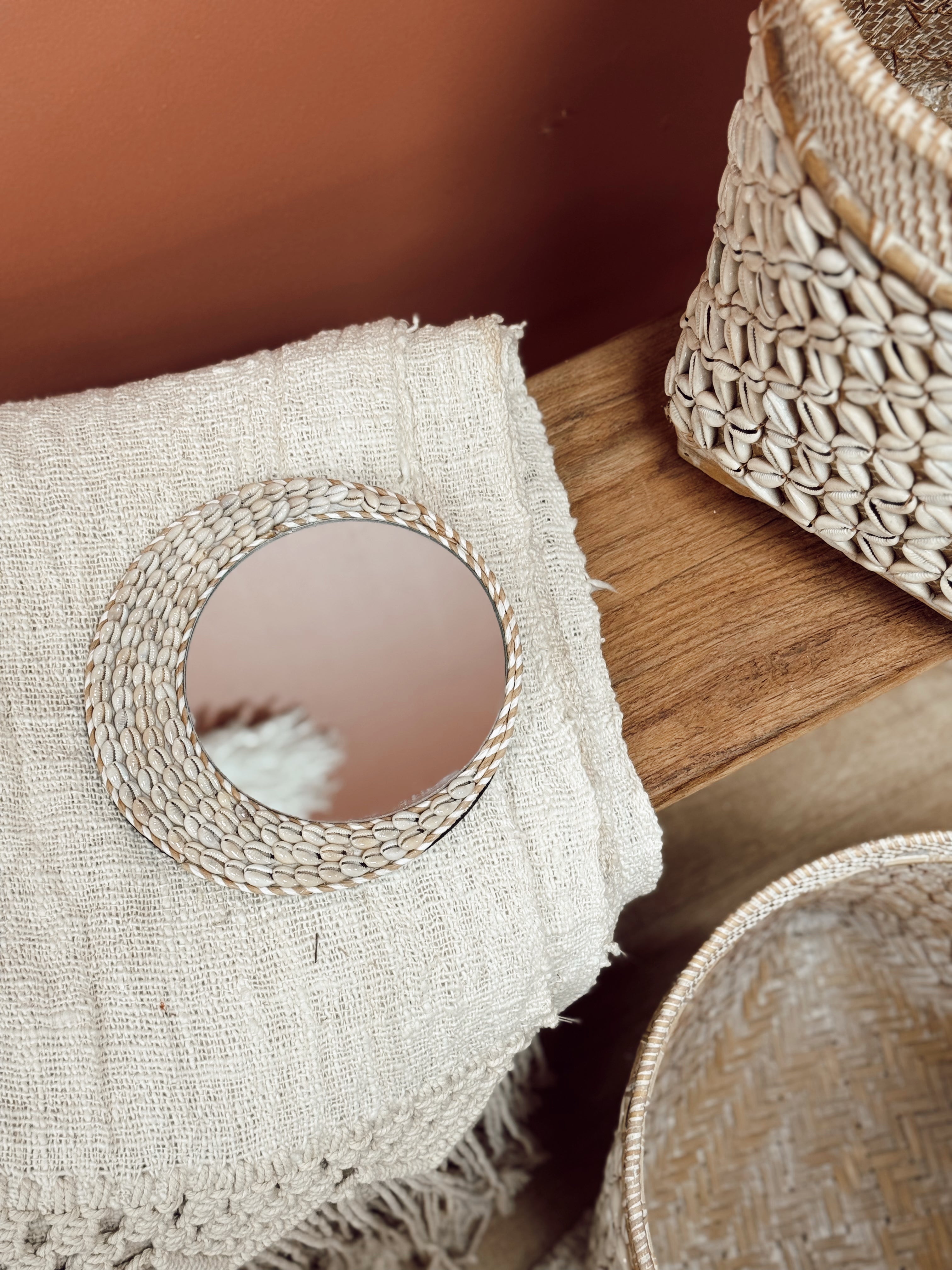 Petit trésor côtier à accrocher ou à poser, ce miroir artisanal est orné de coquillages et de perles naturelles. Chaque modèle est réalisé à la main à Bali, dans une esthétique bohème raffinée.